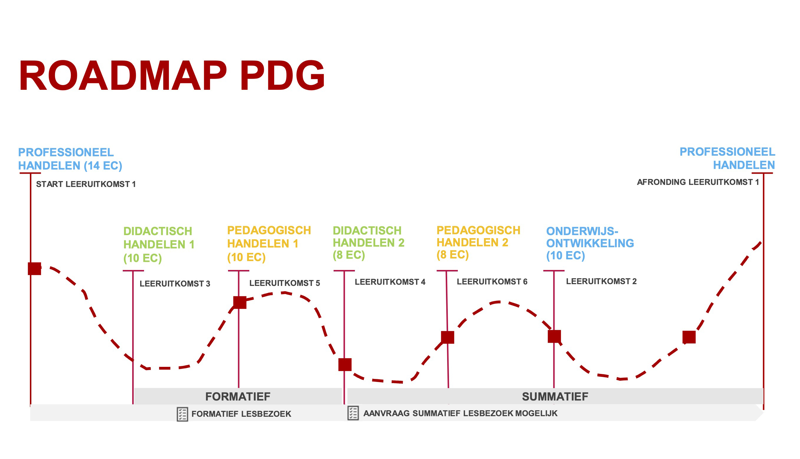 In onderstaande roadmap is de PDG opleiding visueel weergegeven.