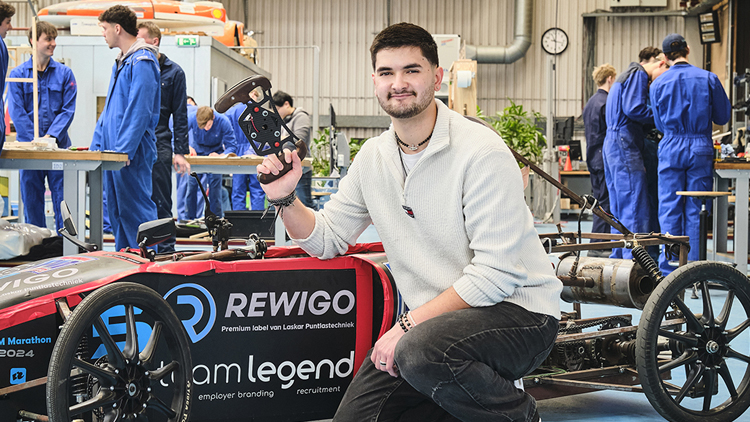 Tijdens zijn tweede jaar werkte Fabian met zijn team aan een zuinig voertuig, dat ze zelf testten op het circuit – en wonnen. Zijn toekomstdroom? Projectmanager worden en high-performance onderdelen ontwikkelen voor racewagens.