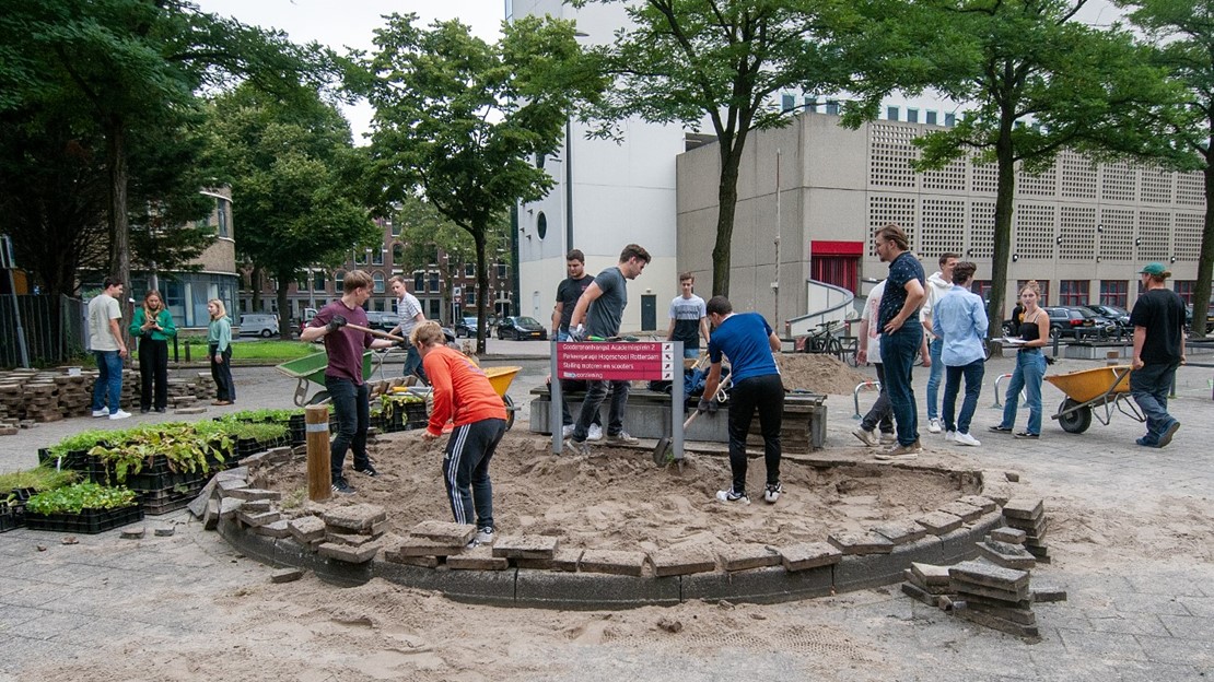 “Hitte, droogte en wateroverlast doen zich steeds vaker en in steeds extremere vormen voor en dat is ook in Rotterdam merkbaar. Door de stad waar onze hogeschool onderdeel van is te helpen vergroenen, kunnen we zorgen voor lokale tempering van de temperatuur en een betere opvang van regenwater. Het planten van honderden inheemse planten en bloemen stimuleert bovendien de biodiversiteit”, vertelt Robert van Ingen, directeur van het Instituut voor de Gebouwde Omgeving.