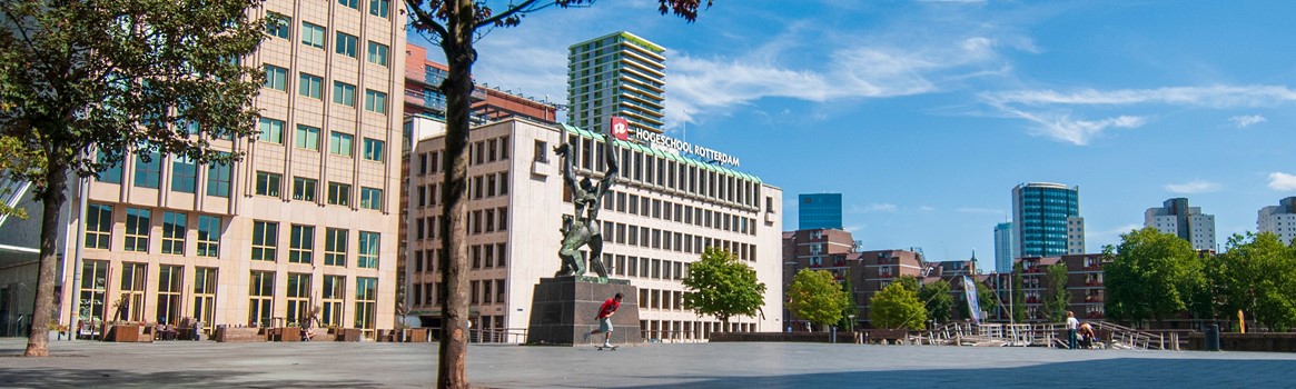 Neem vanaf Rotterdam Centraal Station metrolijn D richting De Akkers of E richting Slinge. Stap uit bij metrostation Beurs en loop 400 meter richting de Kamer van Koophandel, langs het water richting het zuiden.
