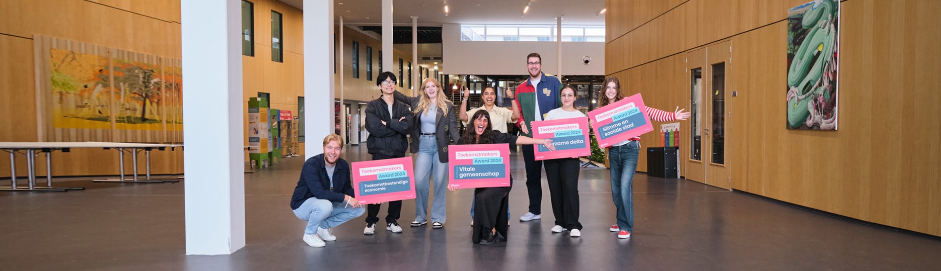 Living Lab Plasticvrije Delta won de Toekomstmakers Award voor de opgave Duurzame Delta. Farida Maai, student watermanagement, nam de prijs namens het Lab in ontvangst. In dit doorlopende onderzoek proberen studenten vervuiling aan te pakken. Dit doen ze door een integrale aanpak waarin toegepast onderzoek, onderwijs en het werkveld samenwerken aan een duurzame (Rijn-Maas)delta. Deze samenwerkingsgerichte aanpak richt zich op de monitoring van plastics, inzameling en duurzame verwerking ervan, maar ook bronaanpak en bewustwording. De jury beoordeelde het project als een zeer sterk langlopend en voortbouwend project en een vernieuwende onderwijsvorm waarin het voor studenten tastbaar wordt waar het over gaat en waar ze het voor doen.