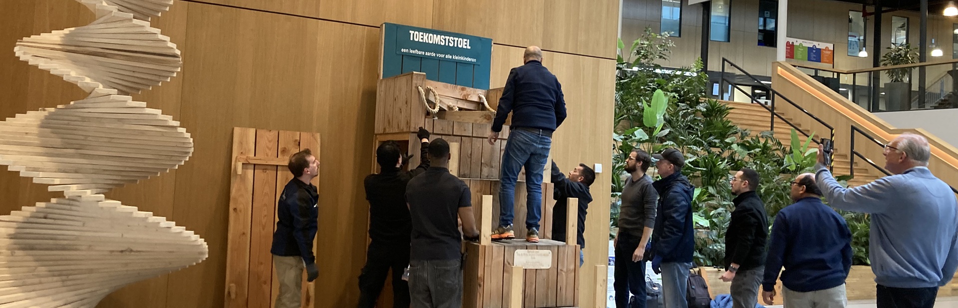 De Toekomststoel is bedacht door Jan Terlouw en symboliseert het belang en de stem van volgende generaties bij belangrijke beslissingen over het klimaat. In 2022 heeft ‘Grootouders voor het klimaat’ het idee van de Toekomststoel geadopteerd en inmiddels is deze een reizend bouwwerk geworden.