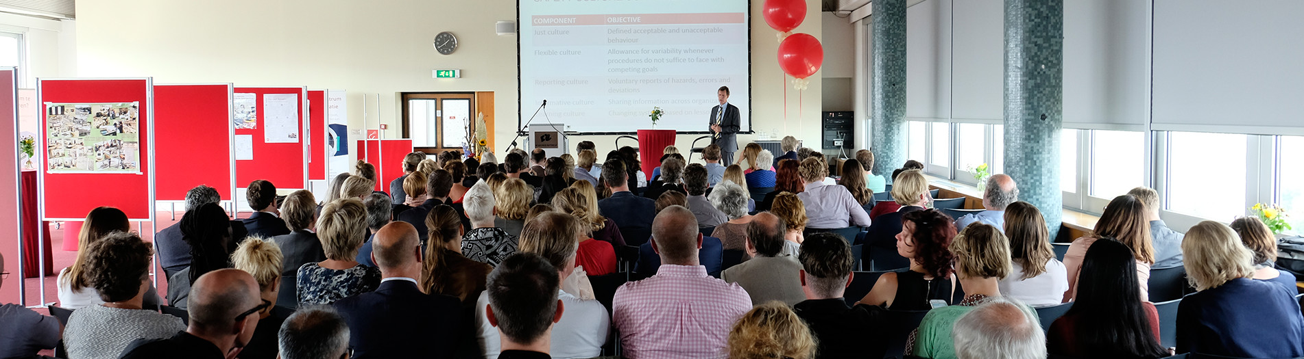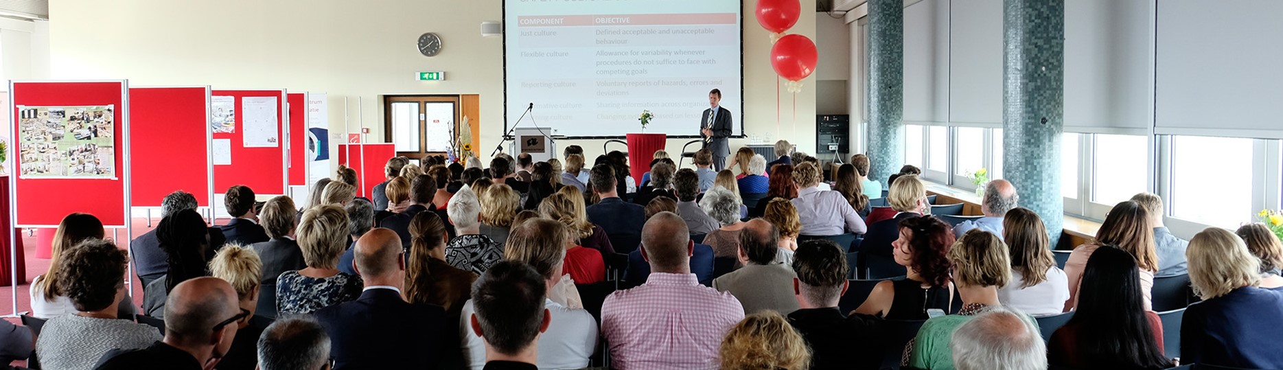 De Dag van Praktijkgericht Onderzoek werd geopend door Angelien Sanderman, lid College van Bestuur, Hogeschool Rotterdam en dr. Marleen Goumans, programmadirecteur Kenniscentrum Zorginnovatie. Daarna begon het plenaire gedeelte waarin allereerst het woord was voor dr. Robert Jan de Boer, professor Aviation Engineering bij Hogeschool van Amsterdam. Hij was uitgenodigd om meer te vertellen over zijn onderzoek en de impact dat deze heeft gehad in de luchtvaartsector. Vervolgens presenteerde Patricia Vuijk, Lector Publieke Zorg en Preventie voor Jeugd bij Kenniscentrum Zorginnovatie, het onderzoek Flow. Tom Egbers, bekend sportpresentator en journalist, nam de presentatie van de dag voor zijn rekening.