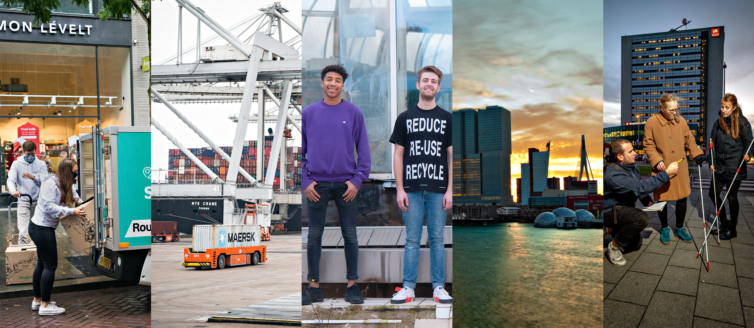 Samen met programmacoördinator Hilke Stibbe ging Hans in gesprek met de directeuren van de betrokken instituten om Rotterdam ‘af te pellen’. “We zeggen altijd dat we impact willen maken in de stad. Maar wat is Rotterdam nou precies voor ons? Wat zijn de belangrijkste sectoren in de stad en welke belangrijke thema’s spelen in die sectoren? Door dat inzichtelijk te maken, kunnen we onze studenten veel gerichter klaarstomen voor de toekomst. Het eerste doel van een opleiding is natuurlijk een goed diploma, maar dankzij HRTech kunnen we meer bieden. Onze studenten gaan aan de slag met maatschappelijke onderwerpen waarbij ze leren samenwerken met studenten van andere opleidingen. Op die manier leveren we goede professionals af aan Rotterdam. Ze zijn dan niet alleen klaar voor hun eerste baan, maar ook voor de rest van hun loopbaan.”