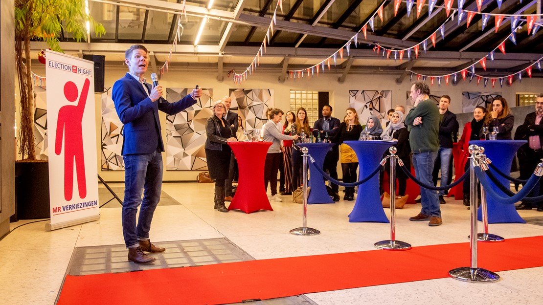 Ieder jaar worden er nieuwe kandidaten gekozen voor de MR. Sinds drie jaar wordt hier groots mee uitgepakt tijdens de Election Night. Zo ook gisteravond. De rode loper lag uit, de blauw/rode vlaggetjes hingen feestelijk door de hele zaal en de hapjes en drankjes stonden om 16.30 uur startklaar voor alle gasten. Medewerkers, studenten en docenten kwamen in grote getalen af op de spannende afsluiting die volgde op ruim twee dagen stemmen. Wie oh wie mag er in 2019 plaatsnemen in de MR?