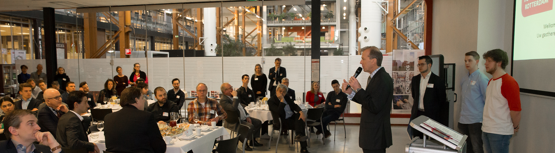 Het Techniektalentontbijt werd georganiseerd voor CEO’s en HR-managers van Rotterdamse haven- en techniekbedrijven. Ook aanwezig waren studenten die net bij hen zijn begonnen met praktijkcases en afstudeeronderzoek. Locatie was RDM Rotterdam, de innovatiecampus in de haven, waar bedrijven, onderwijs en onderzoek samenwerken in een contextrijke leerwerkomgeving.