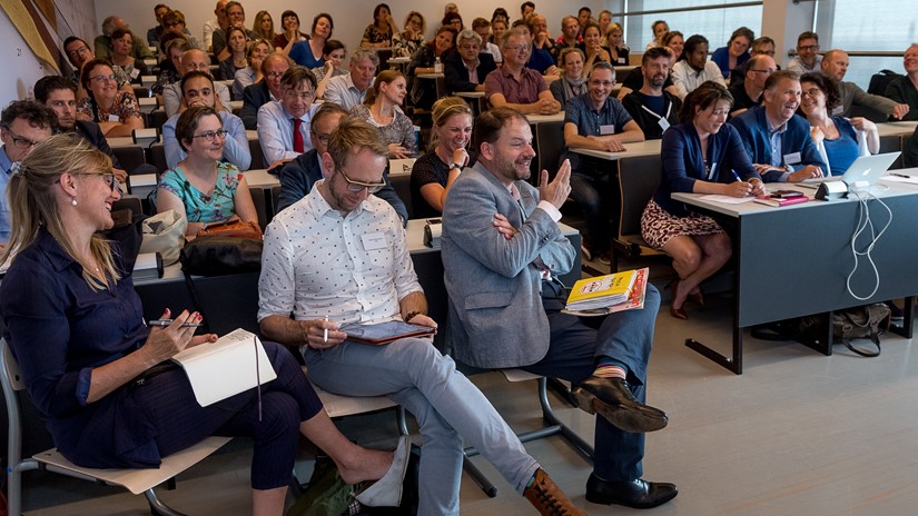 Acht zeer concrete ideeën presenteren zich in exact vijf minuten aan een tot de laatste stoel bezette collegezaal. Dagvoorzitter is Willemijn Phielix die de middag energiek op gang houdt. De vakjury, bestaande uit een afvaardiging vanuit docenten, studenten, directeuren, lectoren, onderwijskundigen en onderwijsmanagers, heeft plaats genomen op de voorste rij en heeft de taak om geen oordeel te vellen maar louter tips mee te geven aan de projectleiders om zo hun kansen te verhogen. De bedoeling is om na de zomer van start te gaan met de ideeën.