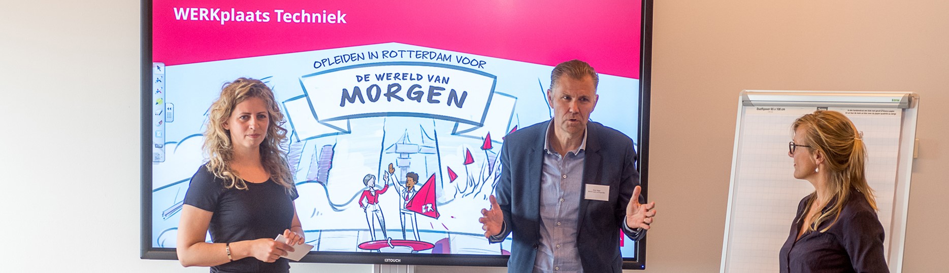 Voor de pitch begint, memoreert Hans Maas, directeur RDM, de ontwikkeling die WERKplaats techniek in gang heeft gezet. “We gaan nu aan de slag en hebben de positieve energie gekregen om het te versnellen.” De technische opleidingen werken namelijk al een geruime tijd samen, maar met de WERKplaats hebben de technische opleidingen nu een podium die ze verdienen.