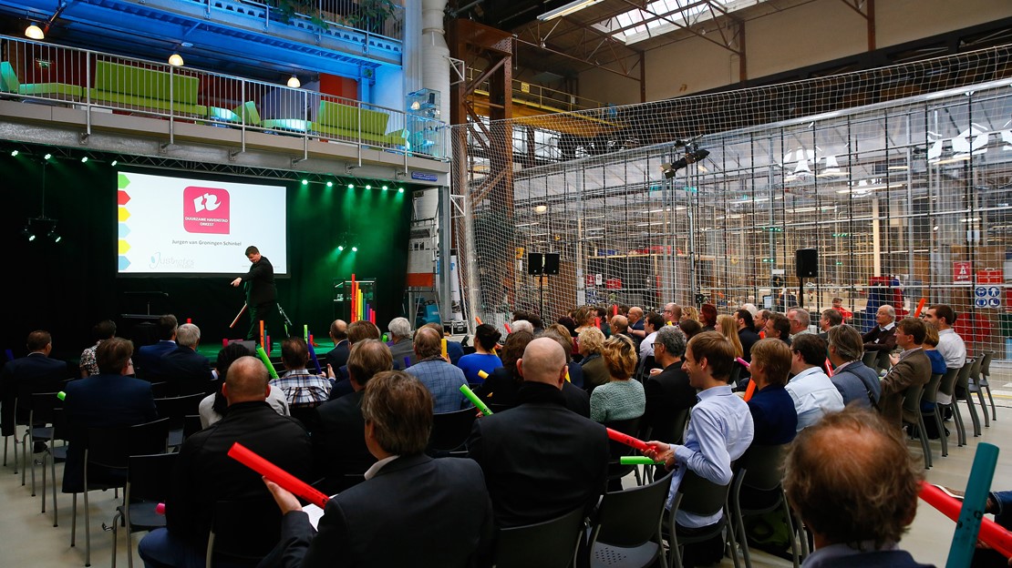 Ari Deelder (dochter van) liet aan de hand van een quiz een serie wist-je-datjes over duurzaamheid los op het publiek. Youtube gebruikt duurzamere energiebronnen dan Netflix om maar iets te noemen. Wijnand van den Brink mocht als kersvers Collegelid zijn eerste officiële openingshandeling verrichten. Met een ferme druk op een knop liet hij een drone in actie komen die het Havenlab opende.