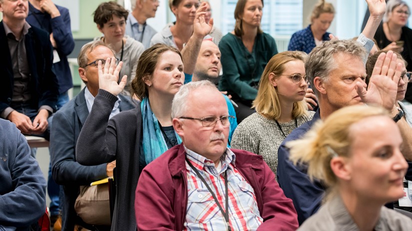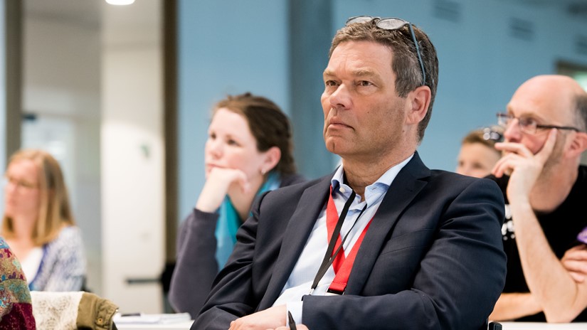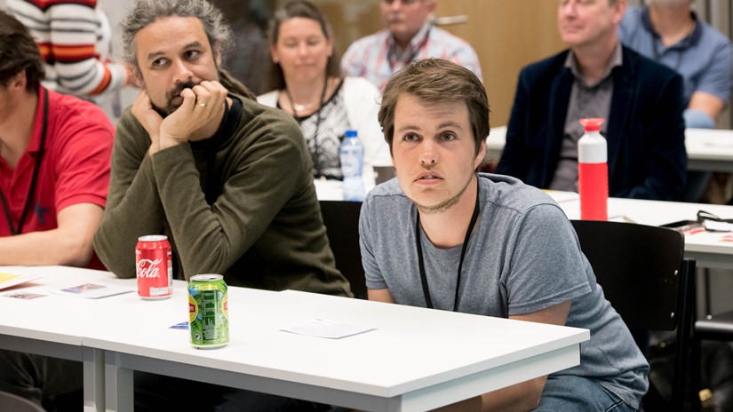 Slotspreker is Dick van der Wateren (docent, onderwijspionier, auteur en ebublogger). In 2016 verscheen zijn boek ‘Verwondering’. Alhoewel minder komisch dan de openingsspreker weet hij iedereen te boeien met onder andere talloze citaten uit de literatuur. Onderwijs heeft een pedagogische opdracht, citeert hij Gert Biesta en laat vervolgens zien dat dat in drie dimensies gaat: kwalificatie (“Dat is vaak griezelig”, voegt hij eraan toe), socialisatie (cultuur) en subjectificatie (zelf het onderwerp zijn van de ontwikkelingen).