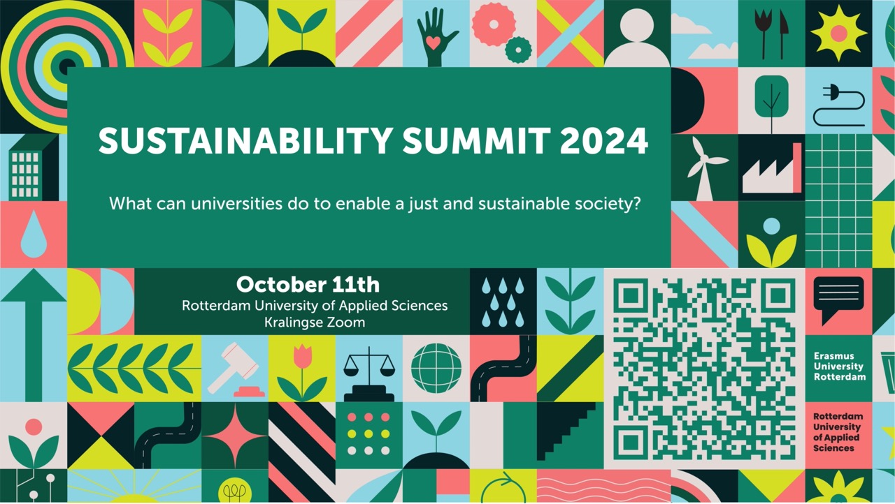 Tijdens deze summit, die door Hogeschool Rotterdam en Erasmus Universiteit Rotterdam (EUR) op de Kralingse Zoom is georganiseerd, gaan we met elkaar in gesprek over onze rol in het realiseren van een toekomstbestendige samenleving. We bouwen samen aan een duurzaamheidsbeweging binnen de Nederlandse academische wereld. Want ongeacht je studie of onderzoeksgebied, we willen allemaal een bloeiende planeet achterlaten voor volgende generaties.
