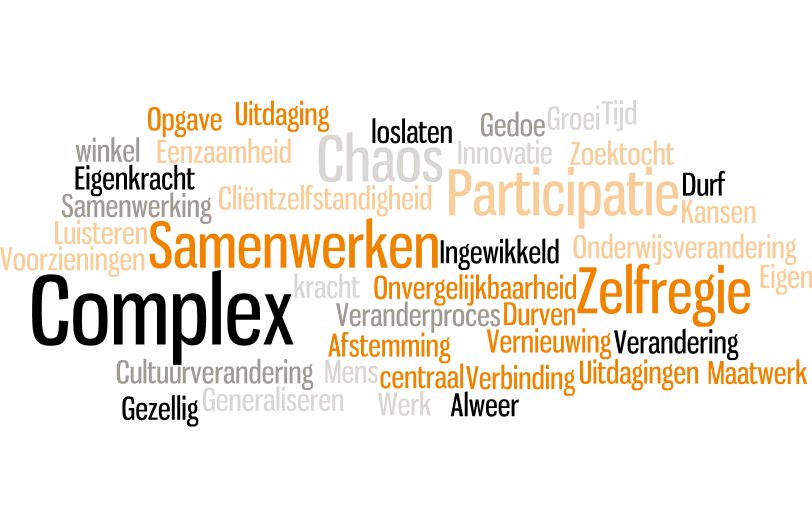 Transformatie? Welke gedachten en associaties zijn er bij dat woord bij de bezoekers? Het leverde het onderstaande beeld op dat plenair werd besproken. In de zaal werd de conclusie getrokken dat het opvallend is dat het woordje doen ontbreekt en dat een woord als ‘complex’ voor uitsluiting kan zorgen.