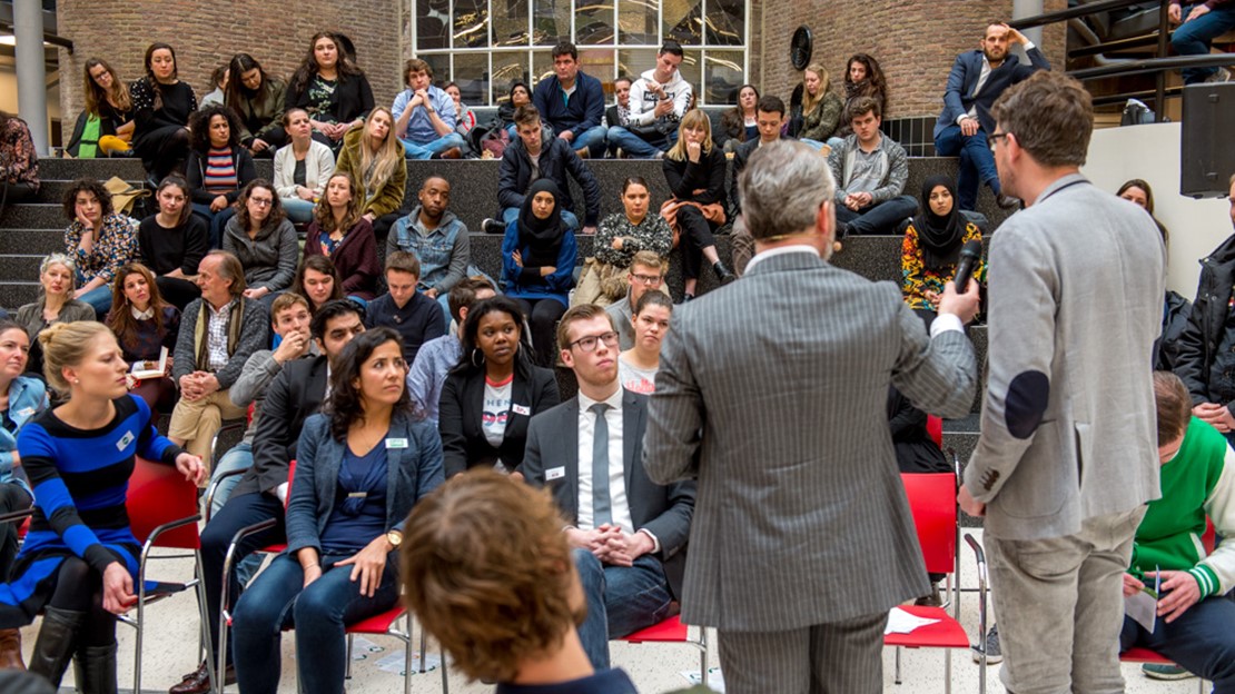 CvB-voorzitter Ron Bormans opent het debat met een korte speech. Hij is er trots op dat lokale politici de hogeschool hebben uitgekozen om hun punt te maken. Volgens hem kijkt heel Nederland naar Rotterdam omdat de politieke tegenstellingen er groot zijn. Hij spreekt de hoop uit dat de politici zich niet alleen bezighouden met hun profilering, maar na 21 maart ook de verantwoordelijkheid zullen nemen om samen te werken. "Of dit nu linksom is of rechtsom."