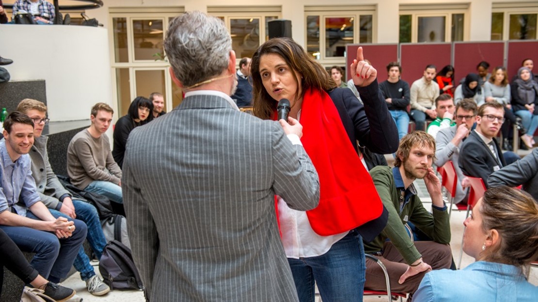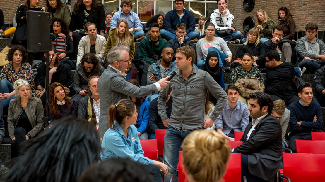 In blokjes stelt Bijl de politici aan het publiek voor. De uit Amsterdam afkomstige Ramona Cairo (SP), zelf student, krijgt applaus als ze vertelt waarom ze zich nu Rotterdammer voelt: "Ik heb in Amsterdam geleerd van Rotterdam te houden. Diversiteit is overal. Maar in Amsterdam zit iedereen in zijn eigen hoekje en dat is in Rotterdam niet het geval."