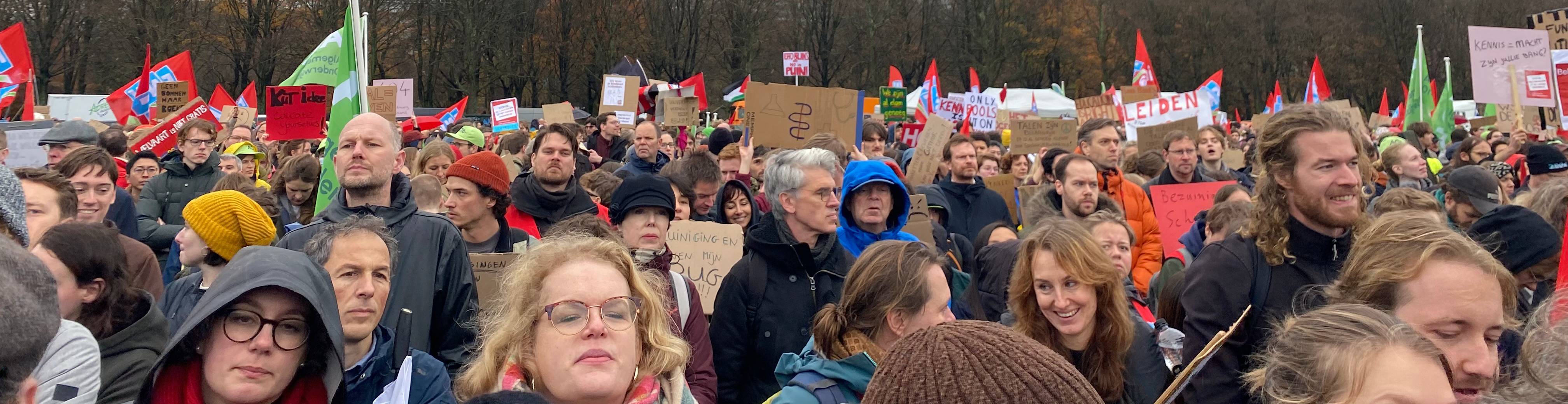 Lidewij ten Kate sluit zich daar als docent Logistiek bij Hogeschool Rotterdam bij aan. “Door hier met duizenden mensen zo’n sterk signaal af te geven, heb ik het gevoel dat de boodschap wel bij minister Bruins zal doordringen. Dat moet ook wel, want er is in de afgelopen jaren al genoeg in het onderwijs gesneden. Nog meer is onmogelijk. Het zorgt allemaal voor een hoop onzekerheid. In ons dagelijks bestaan als docent vragen we ons geregeld af of we over twee jaar nog steeds het onderwijs kunnen uitvoeren zoals wij dat voor studenten voor ogen hebben.’’