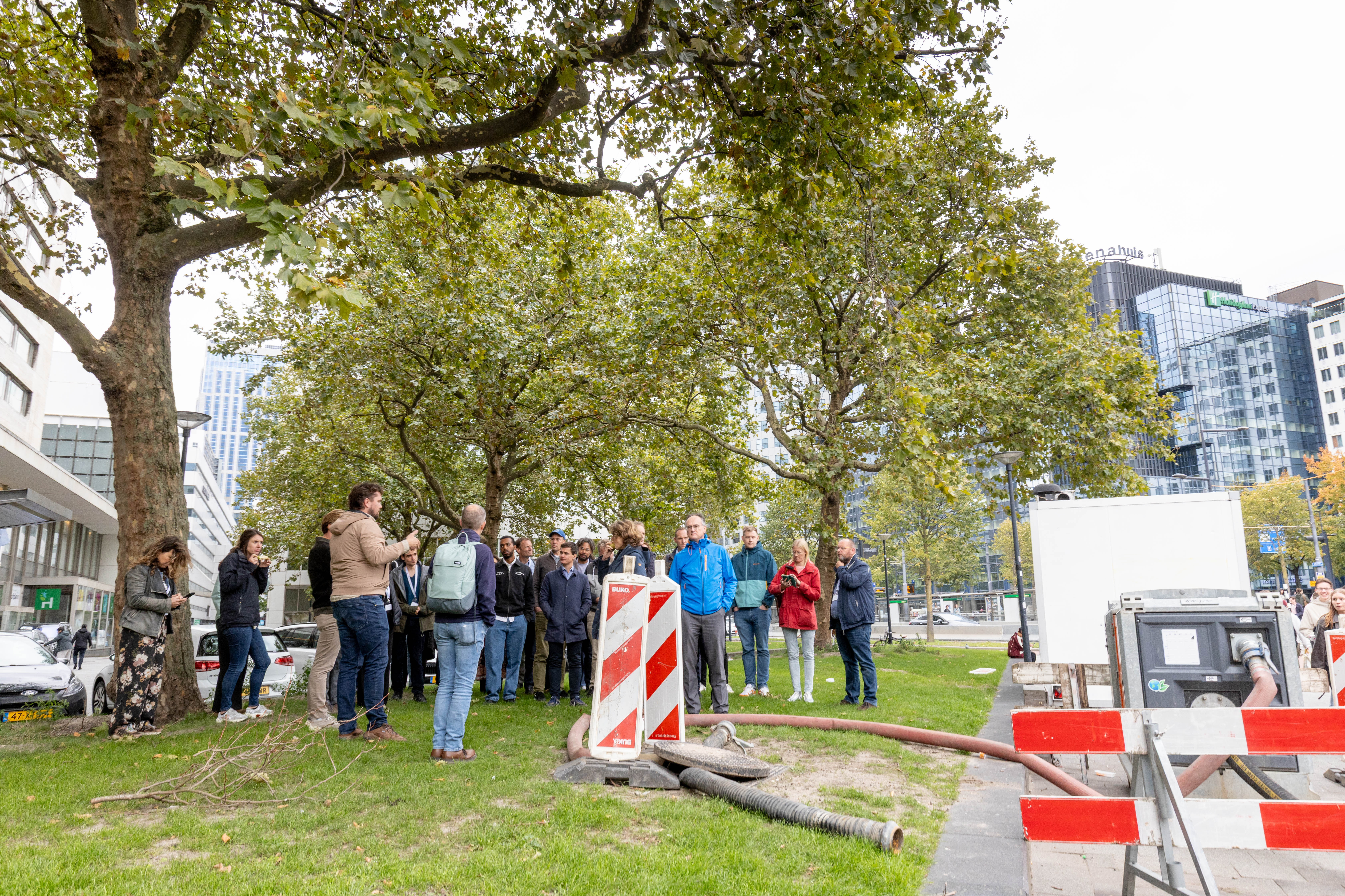 Onder leiding van Eduard Schoor en Rutger Weijers van de Gemeente Rotterdam kregen de partners een exclusieve rondleiding bij de herinrichting van het Hofplein. Hier wordt gebouwd aan de Urban Waterbuffer; een innovatieve oplossing die water opslaat in natte tijden en beschikbaar maakt in droge periodes. Een unieke kans om van dichtbij te zien hoe Rotterdam een icoon van de stad toekomstbestendig maakt.