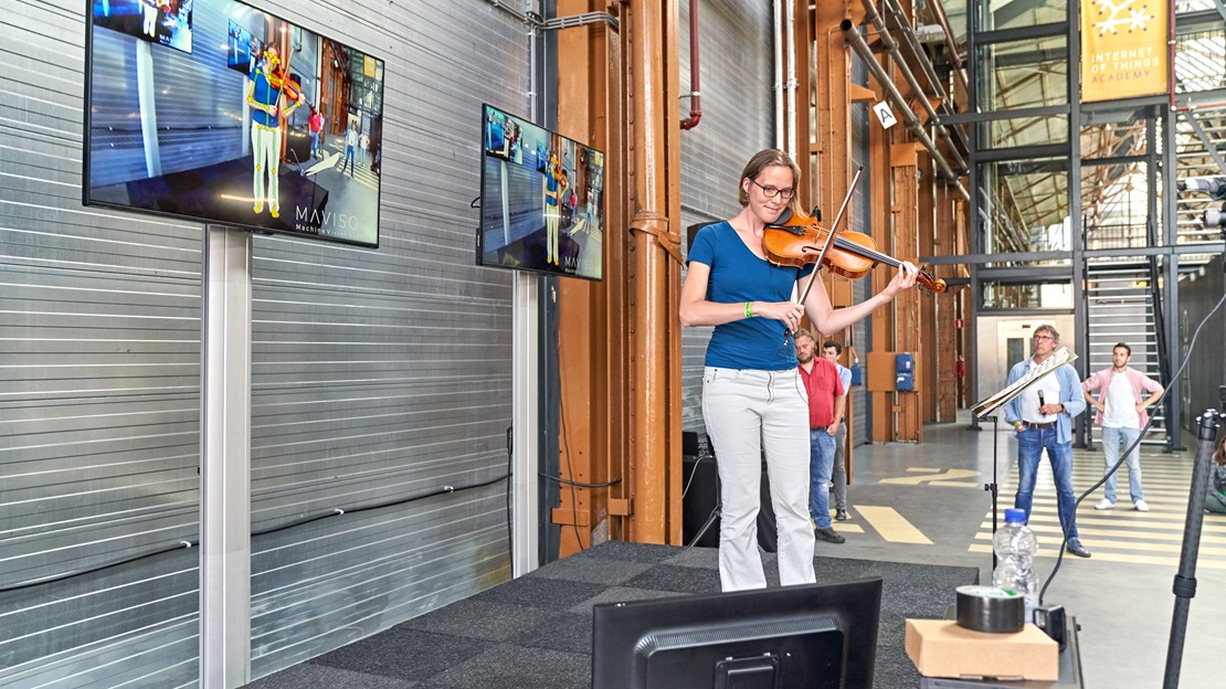 Er was inderdaad voor ieder wat wils. Van een violiste tot acrobatische dansers die aan kettingen ondersteboven aan het dak van Innovation Dock hingen. En van trompettisten tot een operazangeres. Allemaal hadden ze een link met innovatieve projecten van studenten of bedrijven.