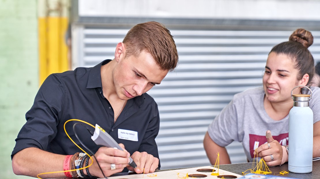 De combinatie van die twee partijen is voor Beau van Leersum ideaal. De derdejaarsstudent Automotive Enineering werkt aan het project ‘Cargopod’, een klein zelfrijdend voertuig waarmee afval opgehaald kan worden. “Ik ben pas 19 jaar, maar ik werk nu al samen met onderzoekers en bedrijven. Zoals het er in de echte wereld aan toe gaat, zeg maar. Voor de Cargopod hebben we bijvoorbeeld dure sensoren nodig, dus moeten we op bedrijven afstappen om te vragen wat we voor elkaar kunnen betekenen. Tijdens dit Festival merk ik dat er bedrijven geïnteresseerd zijn in ons idee. Ik zit midden in de praktijk. Soms lijkt het alsof ik al ben afgestudeerd en écht aan het werk ben. Ik weet zeker dat ik daar niet alleen nu, maar ook in de toekomst van kan profiteren. Ik leer mensen kennen van bedrijven waar ik later kan afstuderen of wellicht zelfs kan gaan werken. Gaaf hè?”
