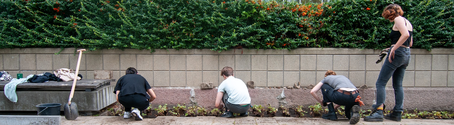 Op vrijdag 1 september staken meer dan zestig eerstejaars de handen uit de mouwen om op het Academieplein, waaraan het gebouw van hun onderwijsinstituut ligt, ruim 100 vierkante meter tegels te verwijderen en te verruilen voor planten en bloemen. In totaal gingen 1.132 stoeptegels eruit om plaats te maken voor groen.