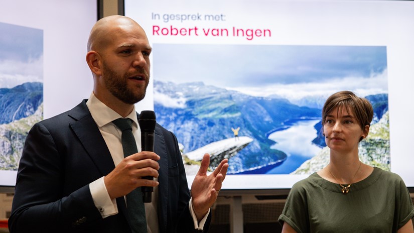 Na een informeel weerzien en het bijkletsen met collega's onder het genot van een lekker ontbijt, was het tijd voor het inhoudelijke deel van het programma. Lisette van Leemput (IGOvationHUB) was deze ochtend onze moderator. Als eerste ging zij in gesprek met Robert van Ingen (directeur IGO). Ze hebben het gehad over hoe zijn vakantie in Noorwegen was. De door hem ingestuurde vakantiefoto zette kracht bij zijn verhaal om te laten zien hoe prachtig het daar is. Verder hebben zij gesproken over hoe hij terugkijkt op het afgelopen jaar, hoe de IGOvisie aansluit bij de Strategische Agenda van de hogeschool en waar hij naar uitkijkt komend studiejaar.