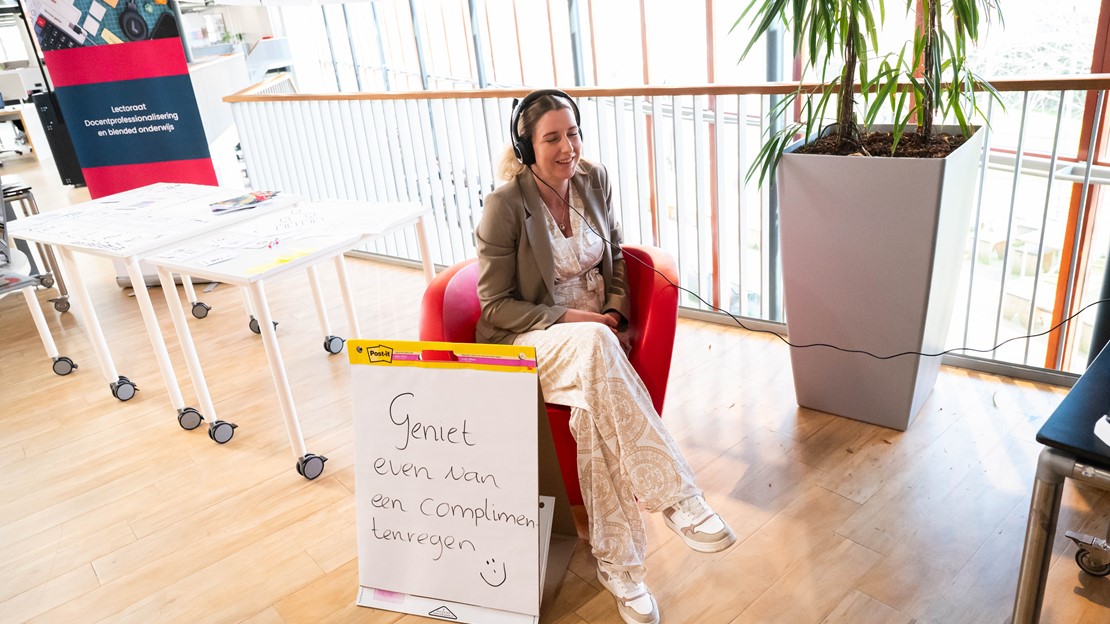 Oud-student Sayen Redan, nu werkzaam als ondersteunend jeugdbeschermer, deelt haar aangrijpende verhaal over het effect van lage en hoge verwachtingen met lector Jarise Kaskens, hoofddocent-onderzoeker Szabinka Dudevszky, beleidsadviseur onderwijskwaliteit en didactisch beeldcoach Eva Thier en onderwijskundig beleidsadviseur Julianne de Leeuwe. Door de lage verwachtingen in de jeugdzorg viel Sayen twee jaar uit het voortgezet onderwijs. De terugkeer was moeilijk: "We durven het niet aan met jou", hoorde zij van scholen waar ze zich aanmeldde. Met steun van een jeugdzorgwerker, die wel in haar geloofde, heeft zij haar pad gevonden en volgt ze nu een master Besturen van Zorgvernieuwing. Jarise: "Ik hoef niks meer te zeggen: hoge verwachtingen, die doen ertoe." Studenten benaderen vanuit hoge verwachtingen kun je doen met tools zoals didactisch beeldcoaching en positieve feedback.