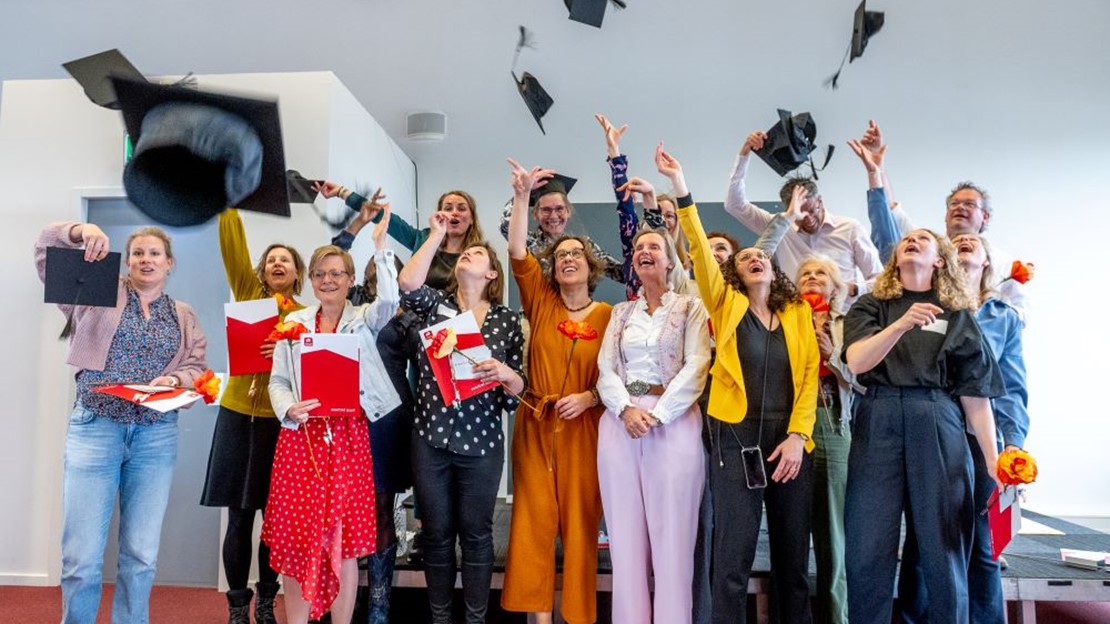 Na afloop van de workshoprondes brak het moment aan waar de achttien interne trainers drie jaar naartoe hebben gewerkt: de diploma-uitreiking. Hanneke Reuling en Sarah Wilton-Wels, beiden van het College van Bestuur van Hogeschool Rotterdam, feliciteerden de deelnemers: “We zijn trots op alle afstudeerders van vandaag. We zijn ervan overtuigd dat hun inzet en inspanningen ten goede komen aan onze hele hogeschool en in het bijzonder aan onze studenten. Hoge verwachtingen, vertaald in kleine gebaren van vertrouwen, kunnen het verschil maken tussen falen en succes van een student.”
