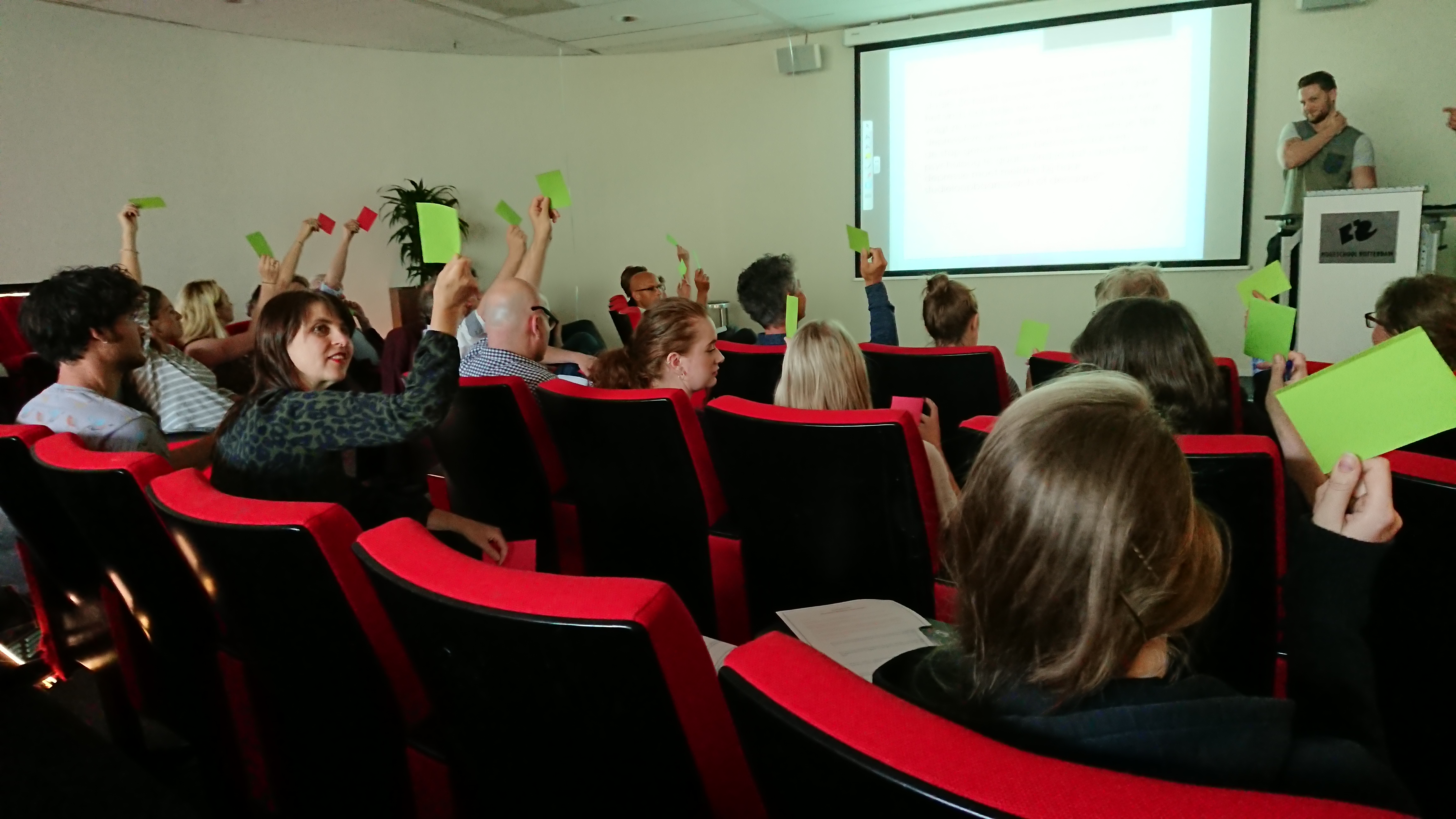 Studenten Yara de Leeuw en David Smits richten hun afstudeeronderzoek op studeren met psychische problemen, zoals bijvoorbeeld een angststoornis of depressie. Zij hadden een onderdeel gepland waar een beetje publieksparticipatie bij kwam kijken. Het publiek kreeg telkens twee opties voorgeschoteld en moest keuzes maken door middel van rode en groene kaarten. Het was een leuk gezicht om telkens een golf van kaarten de lucht in te zien schieten. Na elke vraag werd er kort om uitleg gevraagd van enkele mensen uit het publiek en hier werd vaak nog over gediscussieerd onder leiding van de sprekers. Stellingen die tot discussie leidden waren bijvoorbeeld de stelling: Door studenten met psychische kwetsbaarheid komen docenten niet aan hun werk toe.
