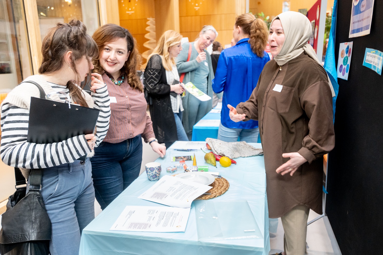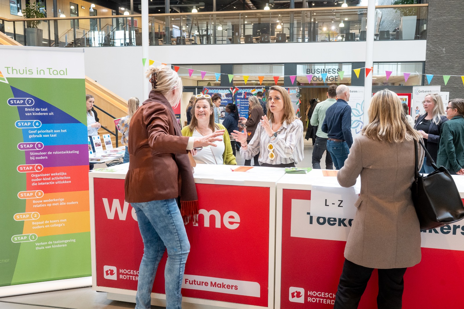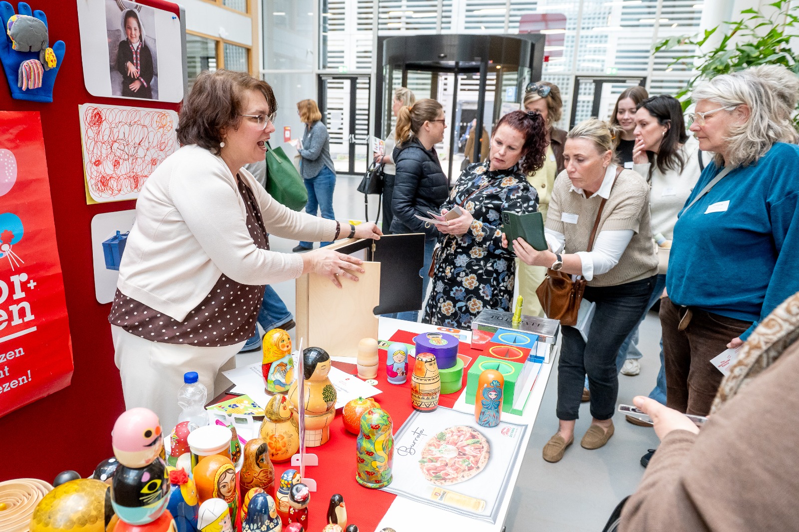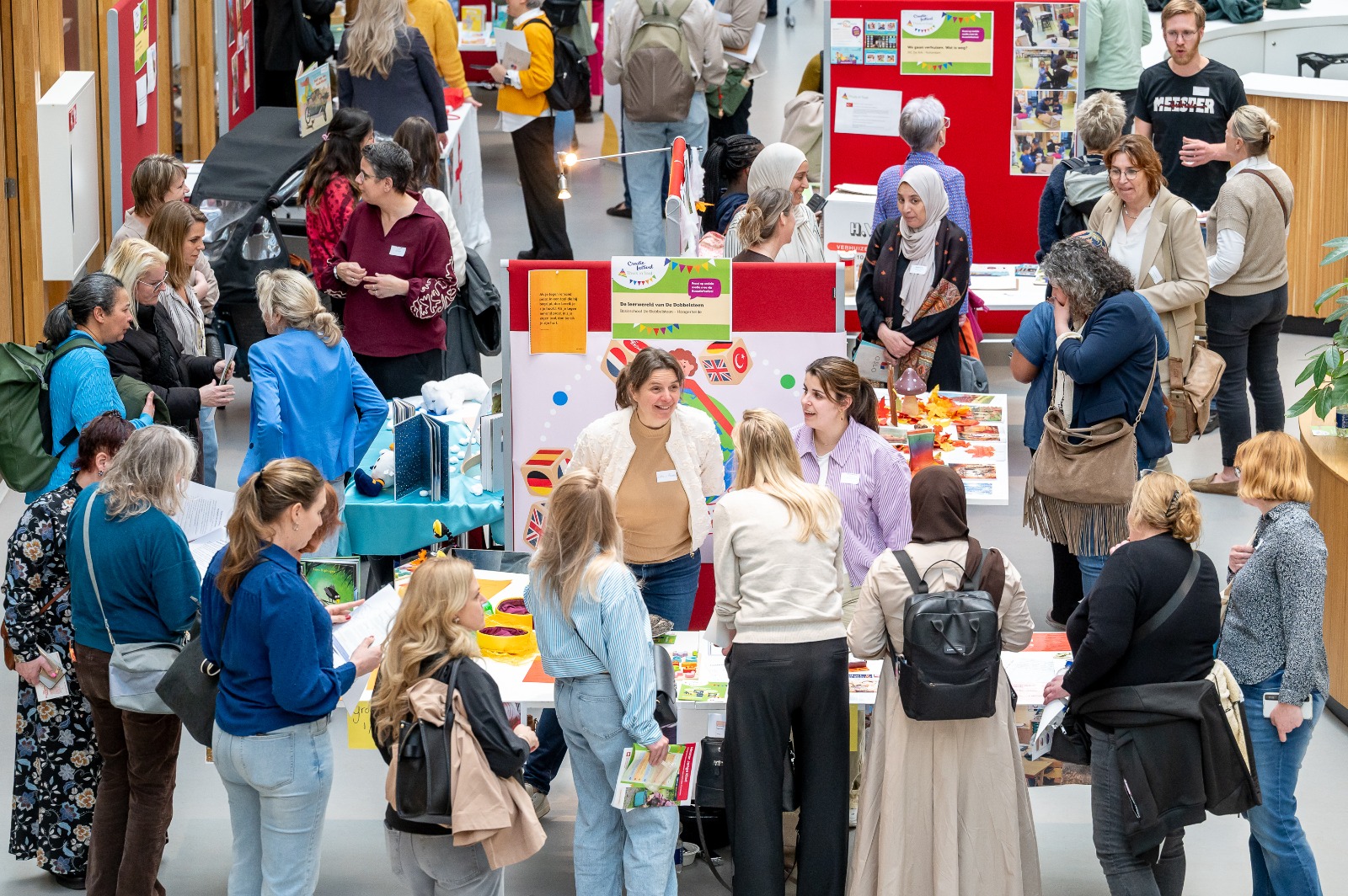 In de kraampjes presenteerden professionals van scholen en uit de kinderopvang verschillende ouder-kind-activiteiten (OKA's). Zo was er de Bloemwinkel, waarbij de groepsruimte op school wordt omgetoverd tot een realistische bloemenwinkel. Ouders en kinderen kunnen hier samen winkeltje spelen. Alle talige activiteiten die daar plaatsvinden, zoals samen een boeketje uitzoeken, een praatje maken en afrekenen, zorgen voor interactie tussen de jonge kinderen en hun ouders. Dit draagt weer bij aan taalstimulering. Deelnemers trokken langs de verschillende kraampjes, waar volop ervaringen en ideeën werden uitgewisseld: wat werkt, wat niet en vooral ook waarom. Steeds weer kwam dezelfde vraag terug: hoe stimuleer je ouders om activiteiten, zoals een bloemenwinkel ook thuis uit te voeren? De gemene deler bij alle kraampjes was helder: plezier staat voorop.
