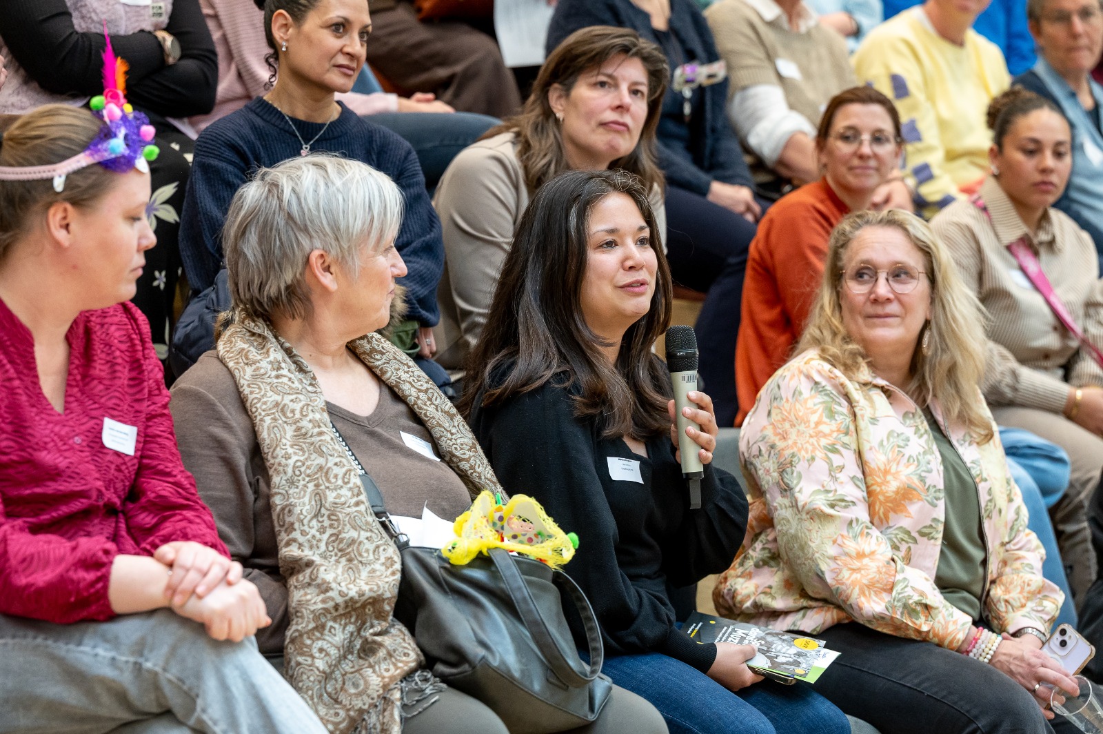 Myrthe Stuit, onderzoeker bij het lectoraat Samenwerken aan een taalrijke omgeving voor jonge kinderen, verzorgde het Atelier Thuis in Taal, waar deelnemers stap voor stap werden meegenomen in de aanpak. Langs de zeven stappen ontdekten zij hoe Thuis in Taal werkt, met bij elke stap een concrete ontwerpactiviteit ter inspiratie, om er zelf mee aan de slag te gaan. Myrthe lichtte de eerste stap toe: ken de thuisomgeving van het kind. Ze merkte dat veel deelnemers de aanpak nog niet actief toepassen, maar wel direct werden geïnspireerd om ermee te starten “Het kost tijd om de aanpak echt goed in de vingers te krijgen”, zegt ze. "Maar klein beginnen is ook waardevol.”