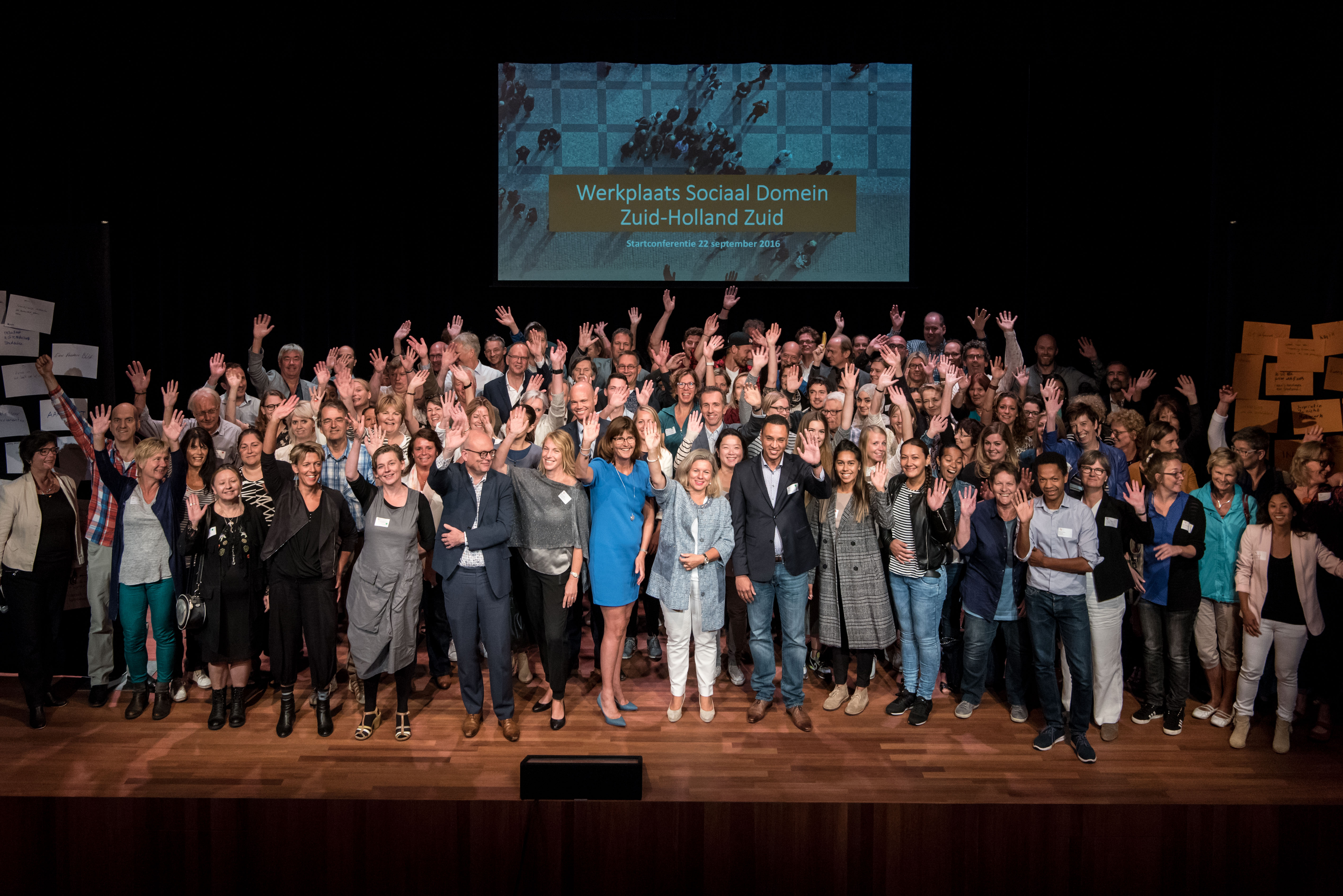 In het panelgesprek kwamen vertegenwoordigers van deelnemende gemeenten aan het woord. Voor deze gemeenten zit de meerwaarde van de werkplaats in de onderlinge samenwerking en regionale verbinding. Karin Lambrechts (wethouder Dordrecht): “In Dordrecht hebben we al sinds 2011 wijkteams en jeugdteams. We hebben al langer de tijd gehad om te leren met alle veranderingen om te gaan. Wij willen onze blik verruimen en we hebben inspiratie nodig. Voor deze transformatie heb je andere gemeenten nodig.” Lorenzo Trimp (wethouder Schiedam): ”Medewerkers van sociaal werkteams hebben te maken met verschillende regels binnen de gemeente én ook van moederorganisaties. Het doorbreken van de schotten is lastig.” Tineke Keuzenkamp (wethouder Ridderkerk) pleit voor het creatief omgaan met die regels, om zo mensen te kunnen helpen. De zaal deelt die mening: “Hoe blijf je bij de mens en laat je de regels een beetje los?” Onno de Zwart (gemeente Rotterdam): ”We weten ook niet alles. En er zullen altijd onverwachte dingen gebeuren. De werkplaats is een goede plek om stil te staan en samen te reflecteren.”