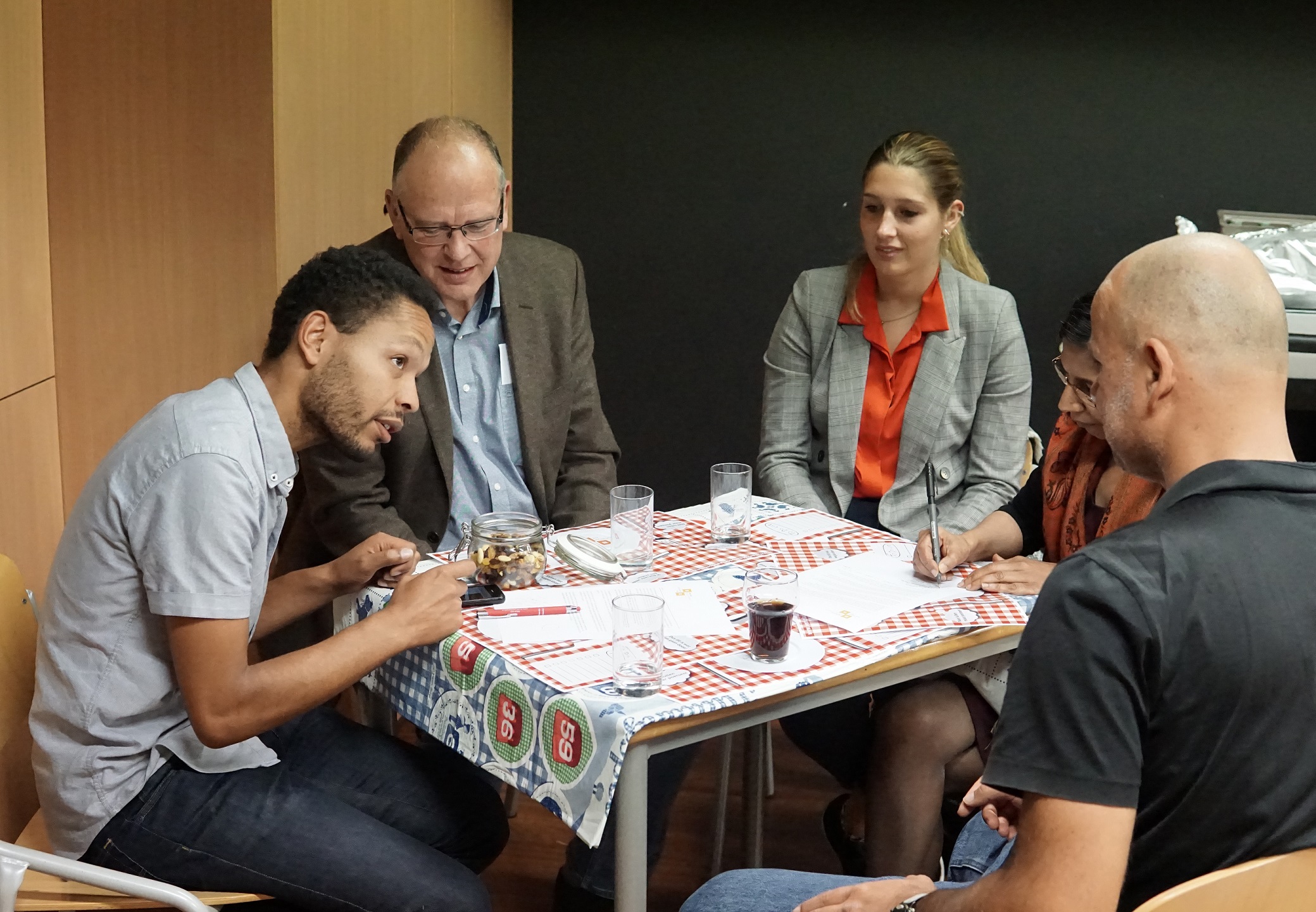 Donderdag 18 oktober organiseerde het Werkteam Informeel-formeel (IF) het eerste kenniscafé van studiejaar 2018 - 2019. Dit werkteam stelt zich tot doel vraagstukken van bewoners te bespreken en – indien mogelijk – op te lossen. Meer over hun werkwijze lees je hier. Op de locatie van Hogeschool Inholland aan de Posthumalaan in Rotterdam kwamen ruim twintig bewoners, beleidsmakers, sociaal ondernemers, (docent)onderzoekers en studenten bij elkaar. Zij gingen actief aan de slag met twee ingewikkelde vraagstukken die om een snelle oplossing vroegen.