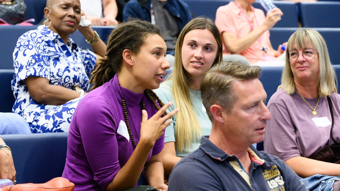 De bijeenkomst startte met een plenair gesprek met verschillende perspectieven. Lorenzo de Waal (Entree-student bij Albeda), Esther de Paus (stagemakelaar bij Albeda Startcollege ), Marco Kranenburg, (directeur bij leerwerkbedrijf Link2Work) en Diana van Dijk (projectleider Kansrijke Entree, Hogeschool Rotterdam) deelden hun ervaringen en verhalen.
