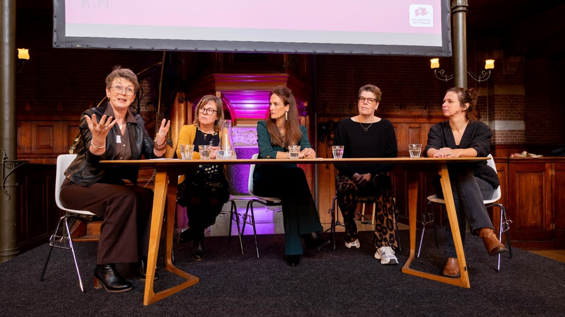 “Leren ‘leren’, dat doen we met taal”, zei Jacqueline van Kruiningen, lector Taalbewust hoger onderwijs en mede-organisator van de conferentie. Samen met vijf andere panelleden van Hogeschool Rotterdam deelde zij haar visie op het belang van taal in het onderwijs.