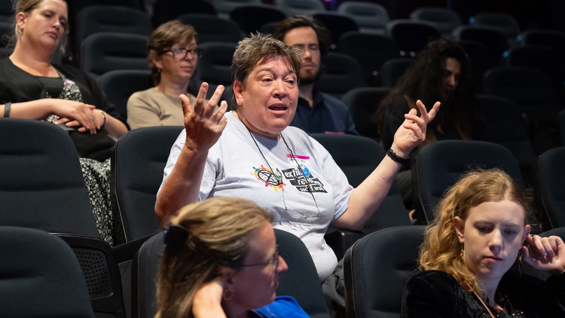 Op de tweede dag sprak Griet Roets, professor Sociaal Werk aan de Universiteit Gent. In haar keynote ‘Een sociaal-ruimtelijk perspectief als hefboom voor sociaal-rechtvaardige omstandigheden” belichtte ze het belang van de leefomgeving voor het welzijn van mensen, en pleitte daarbij voor een actieve benadering van sociaal werk, waarbij institutionele barrières worden aangepakt. “We moeten collectief op dezelfde nagel blijven kloppen tot er écht verandering plaatsvindt.”
