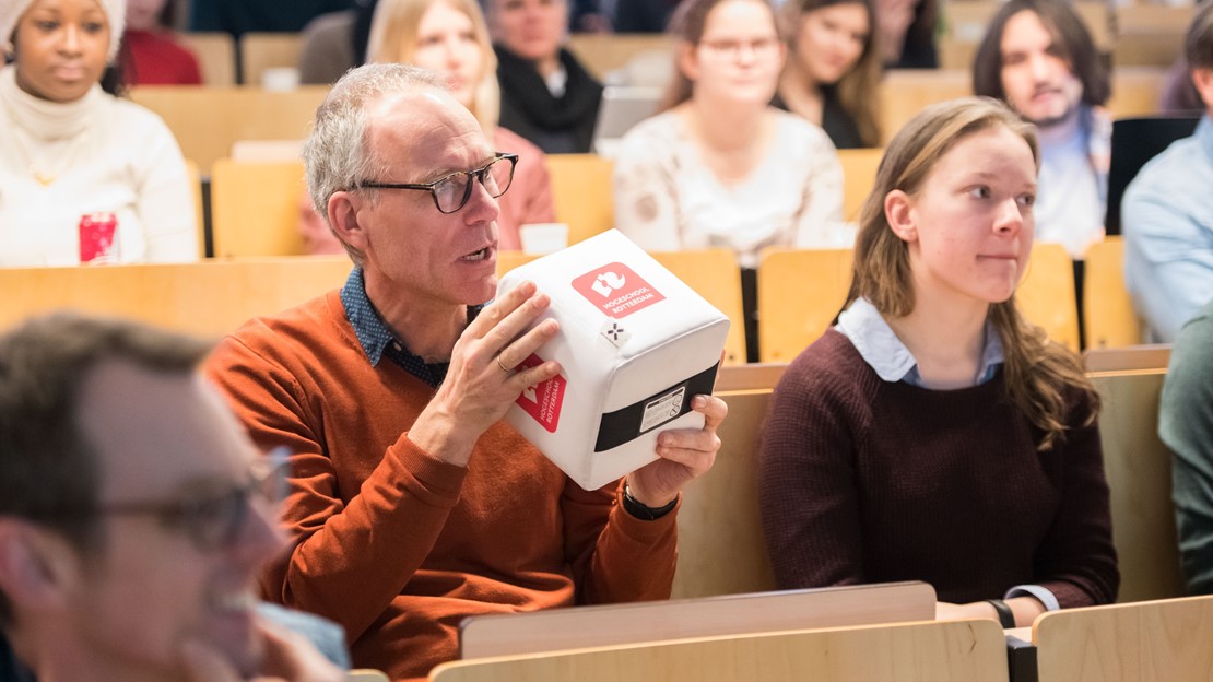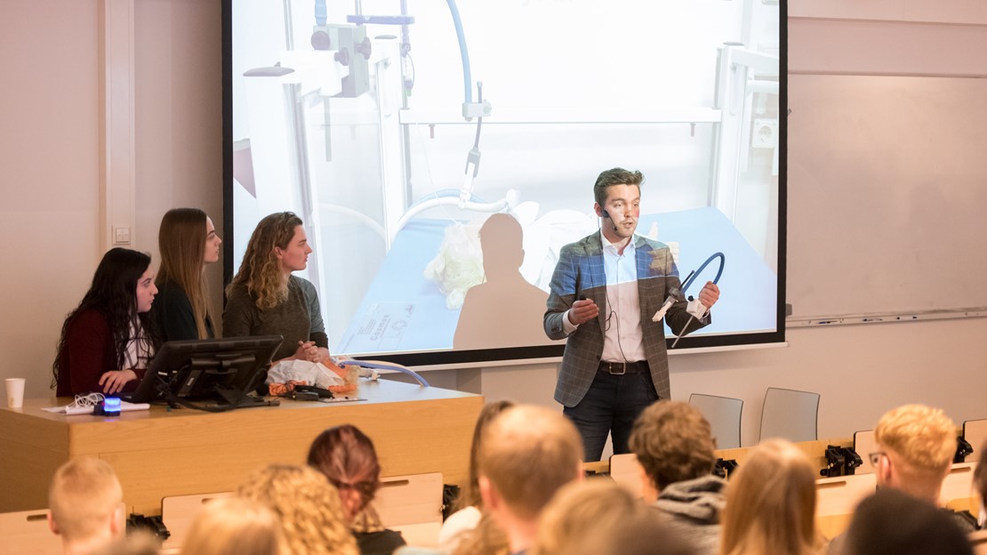 Naast de prijzen voor innovatieve concepten, werd ook dit jaar weer de ‘NLB-er van het jaar’ gekozen. Van de 69 studenten in de minor Zorgtechnologie is Nina Ebbing degene die de titel in de wacht sleept. Zij viel op bij het docententeam door haar aanpak en focus. Nina presenteerde: 'ALEX: de arterielijn extensie'. Dit is een met de patiënt meebewegende arterielijn die op buidelhoogte kan worden ingesteld zonder dat er alarmen afgaan. Ouders kunnen zo zorgeloos buidelen met hun prematuur geboren baby.