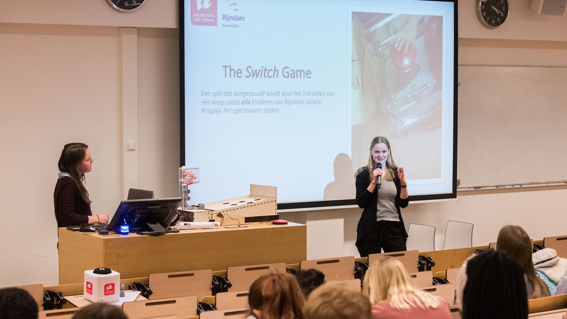‘The Switch Game’ ging ervandoor met de prijs voor ‘Beste presentatie’. De game is een spel voor kinderen met een ernstig meervoudige beperking. Door middel van één druk op de knop worden ballen in een speciaal ontworpen spelbak geschoten. Er is een compleet werkend prototype opgeleverd aan de opdrachtgever en tijdens de testen waren alle betrokken partijen enthousiast.