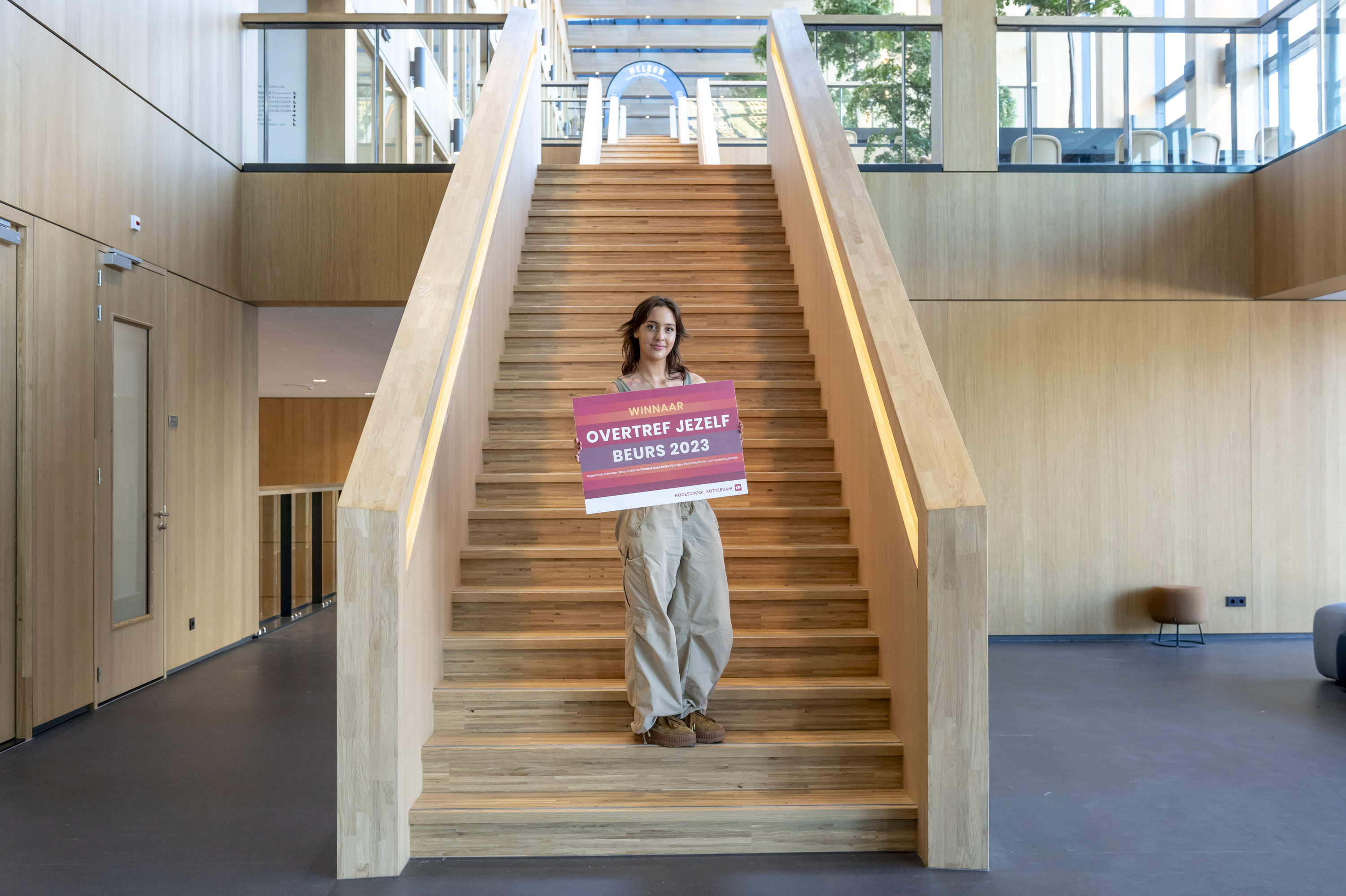 “Ik heb wel zweethandjes hoor”, zei Mouena tijdens de Jaaropening, toen bestuurslid Wijnand van den Brink haar feliciteerde met de Overtref Jezelf Beurs. Logisch, want ze staat niet elke dag op een podium oog in oog met vierhonderd toehoorders. En toch is het belangrijk dat juist haar verhaal wordt gehoord, weet ze.