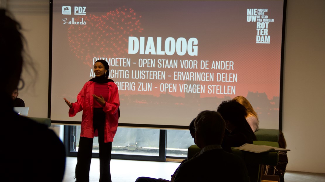 De behoefte van studenten om samen te komen en met elkaar in gesprek te gaan, sluit naadloos aan op het initiatief Nieuw Rotterdam. Doel van dit dialoogpodium is om elkaar met een bepaalde openheid, frequentie en intensiteit te ontmoeten en met elkaar in gesprek te gaan over onderwerpen die de stad van morgen raken.