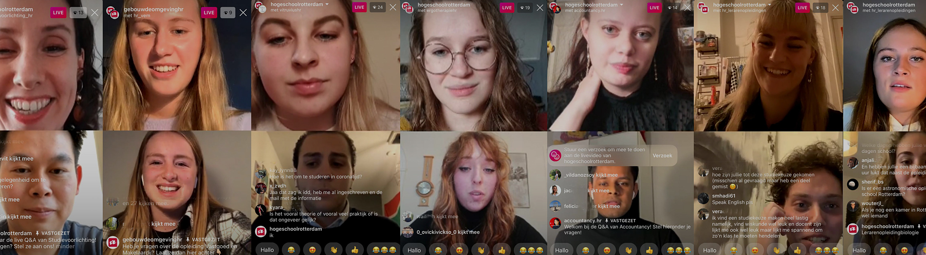 Een van de mogelijkheden om meer te weten te komen over een opleiding waren online webinars en proeflessen. Hiervoor waren ruim 6.000 aanmeldingen. Na een korte voorlichting kregen ze de kans vragen te stellen aan studenten en docenten van de betreffende opleiding. Op die manier kregen ze inzicht in hoe het er in de dagelijkse praktijk aan toe gaat tijdens de studie.