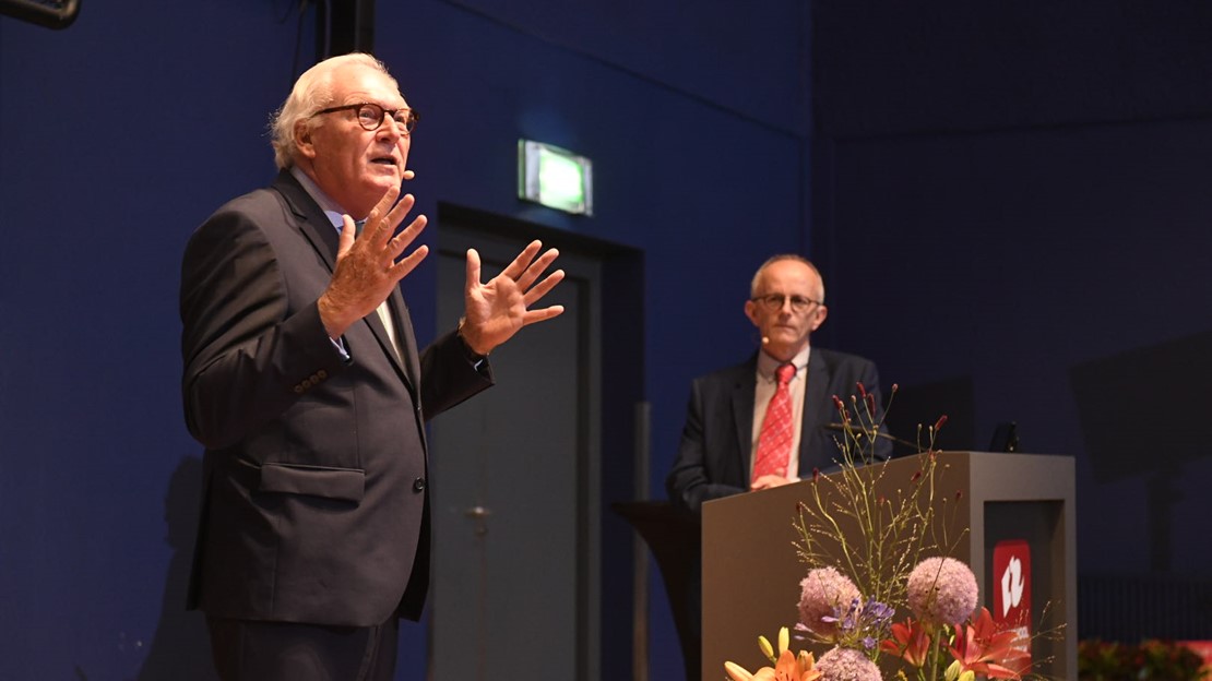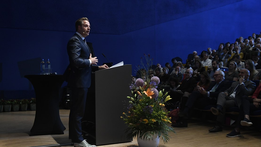 De Jonge wendde zich tot de docenten en studenten. “Júllie leiderschap. Docenten, jullie hebben elke dag de prachtige taak om studenten te vormen. Studenten, werk hard om vanaf morgen weer het beste uit jezelf te halen. Want jullie zijn de mensen op wie wij rekenen. Ontstijg jullie hokje en werk samen, over grenzen heen. Alleen zo kunnen jullie van jullie dromen wereldprestaties maken.”