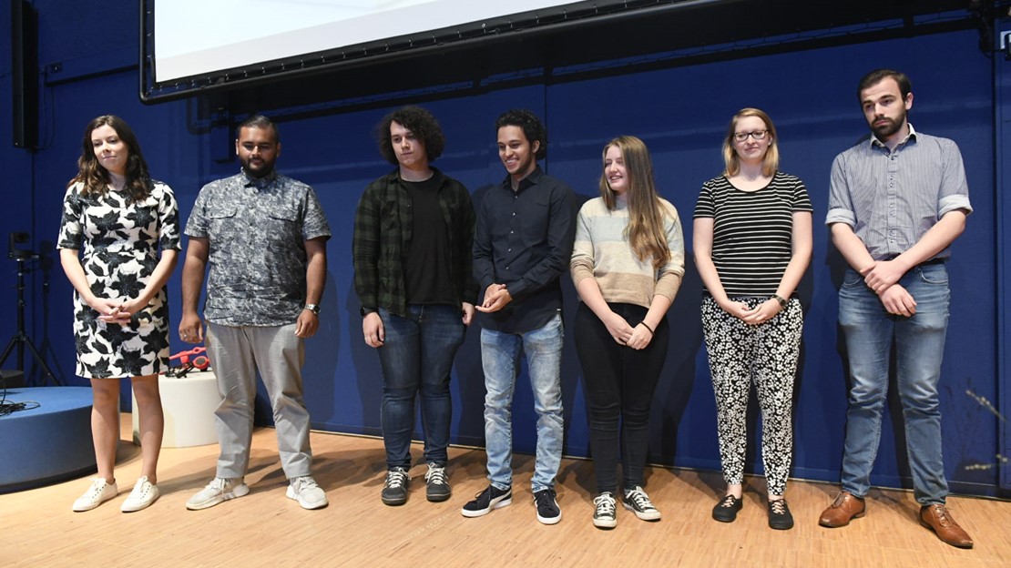 De dag van morgen kwam vaak ter sprake tijdens de jaaropening. “Maar de toekomst is ook al onder ons”, zei bestuursvoorzitter Ron Bormans, na de uitreiking van de Overtref Jezelf Beurs aan student Nancy van Bergenhenegouwen, die een app heeft ontworpen waarmee jongeren hun mentale problemen bespreekbaar kunnen maken. Ook de winnaar van de Bachelor Award 2019 staat al met beide benen in de toekomst. Timothy Singowikromo ontwikkelde een 3D-scanner, waarmee te vroeg geboren baby’s zonder lichaamscontact kunnen worden opgemeten. Ron Bormans: “Als je de toekomst niet kent, dan maak je haar toch gewoon?”