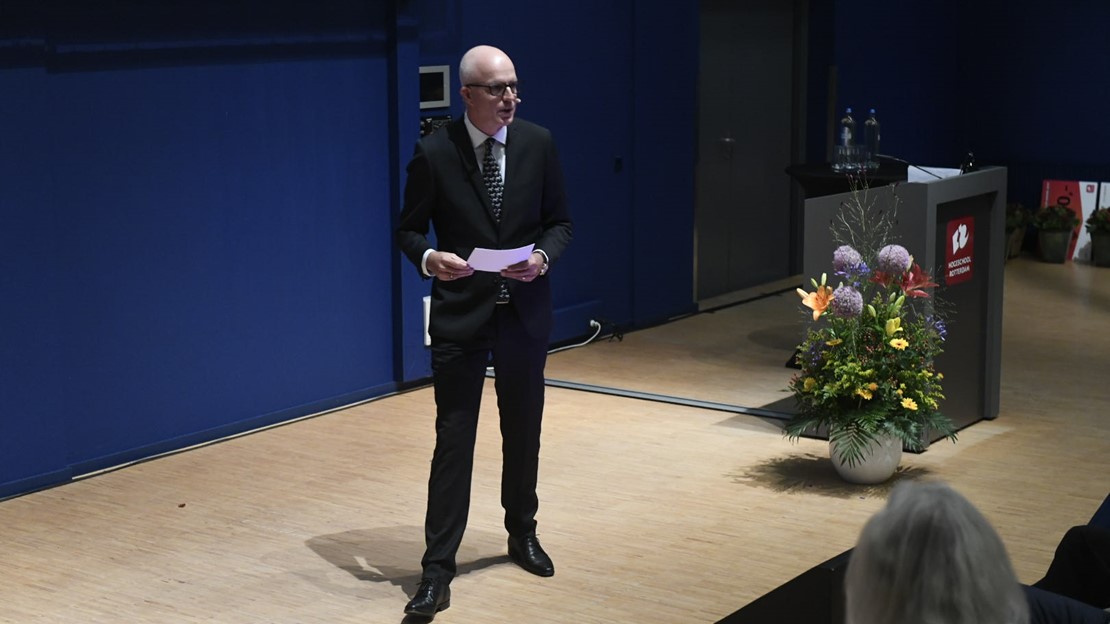 Dat was dan ook het centrale thema tijdens de jaaropening, die mede werd verricht door vicepremier Hugo de Jonge. In 1995 zat hij, om de hoek bij locatie Kralingse Zoom, op de pabo. “Toen werd ik niet alleen verliefd op Rotterdam, maar ook op het onderwijs”, zei De Jonge in een propvol auditorium. “Verliefd op het verschil dat je als leraar kunt maken in het leven van een kind. Omdat school de kraamkamer is van talent. Omdat school een plek is van elke dag een nieuwe kans.”