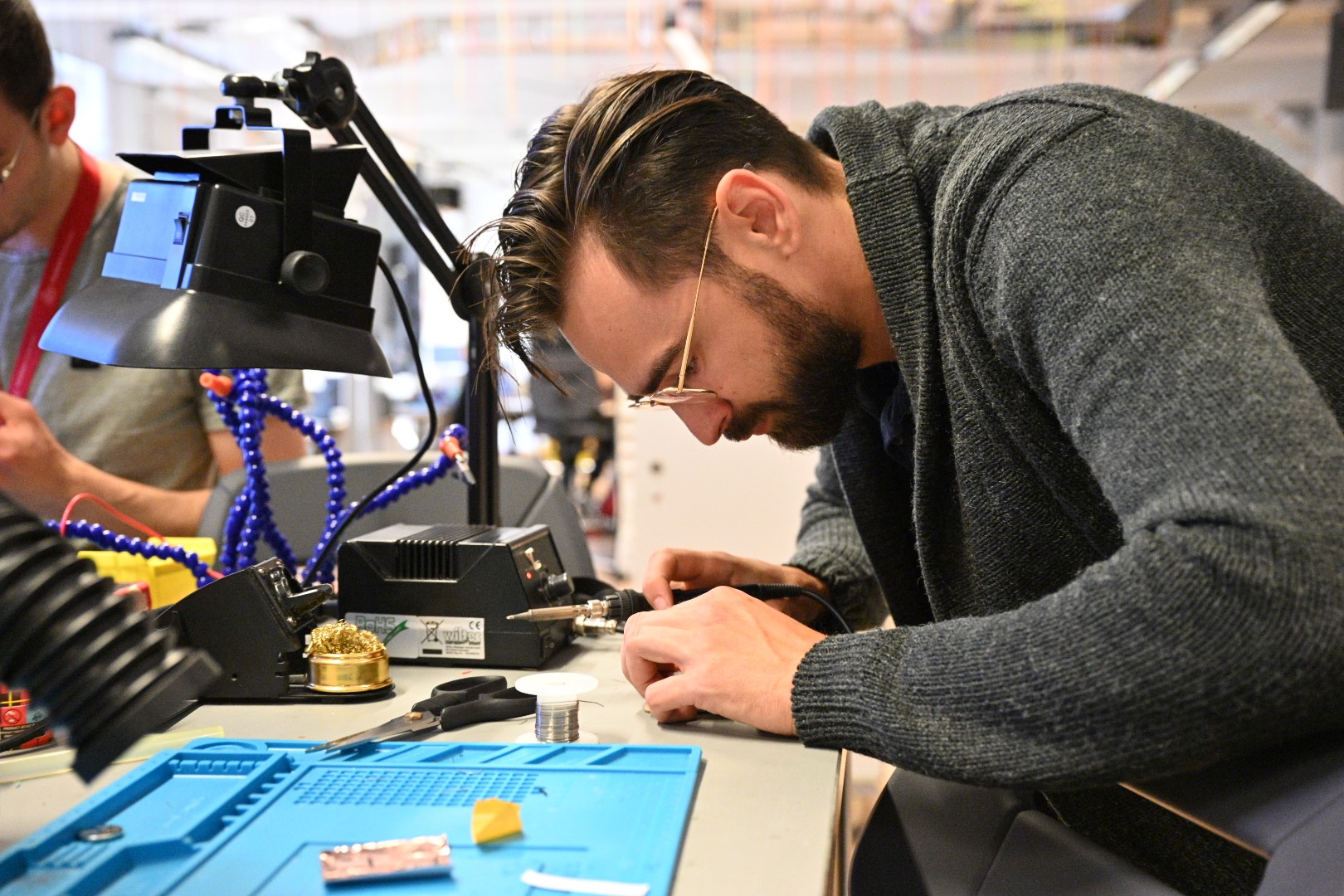 ‘’Alle locaties van HR bereik je vrij makkelijk’’, zegt docent Manon Mostert- van der Sar. ‘’Maar die van ons toen niet. Het lag midden in een ambassadewijk en het kwam met regelmaat voor dat we op maandagochtend een dakloze tegenkwamen die in één van de kamers sliep. Het voordeel daarentegen zat in de vrijheid. We mochten het zelf inrichten en kregen de ruimte om te experimenteren. We hadden bijvoorbeeld een slot op de deur die je openmaakte met je telefoon. Dat klinkt nu heel normaal, maar tien jaar geleden bestond dat eigenlijk niet. Via een open source bouwden we dat systeem na en dat deden we met veel meer dingen. Daar ontstond eigenlijk heel organisch de kernwaarde van ons lab: kennisoverdracht. Er ontstond een gemeenschap van studenten die leerden van open source en elkaar. Die houding vind je nog steeds terug in onze oude en nieuwe studenten. Inmiddels zitten we aan de Wijnhaven.’’
