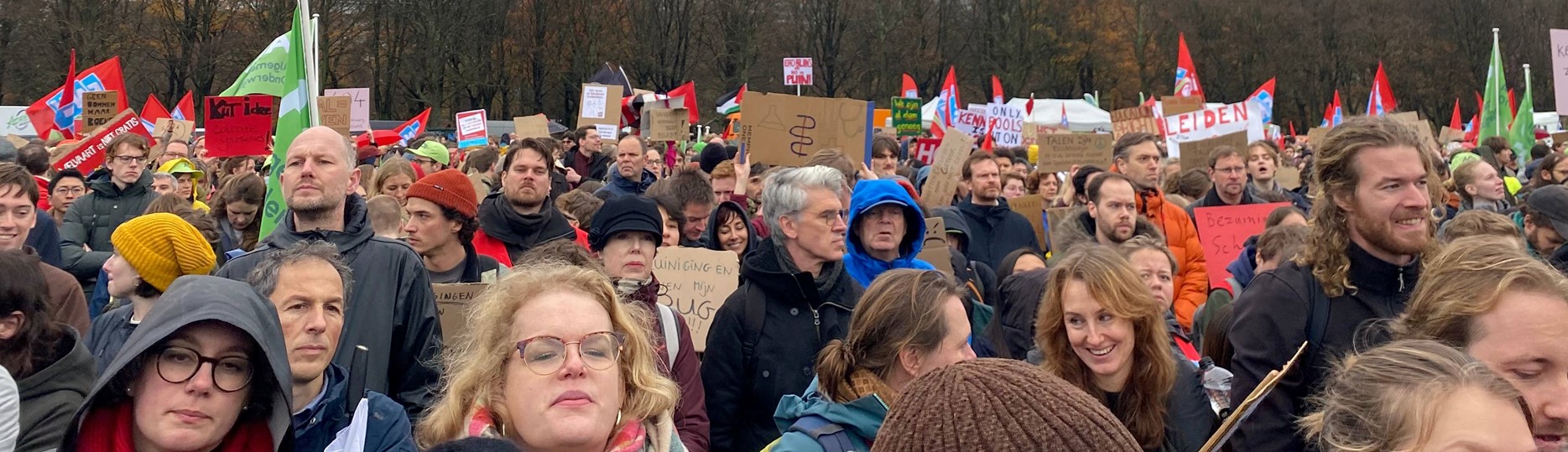 Lidewij ten Kate sluit zich daar als docent Logistiek bij Hogeschool Rotterdam bij aan. “Door hier met duizenden mensen zo’n sterk signaal af te geven, heb ik het gevoel dat de boodschap wel bij minister Bruins zal doordringen. Dat moet ook wel, want er is in de afgelopen jaren al genoeg in het onderwijs gesneden. Nog meer is onmogelijk. Het zorgt allemaal voor een hoop onzekerheid. In ons dagelijks bestaan als docent vragen we ons geregeld af of we over twee jaar nog steeds het onderwijs kunnen uitvoeren zoals wij dat voor studenten voor ogen hebben.’’