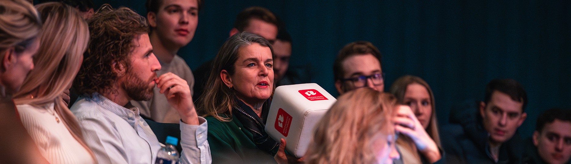In de zaal zitten ruim 250 studenten, docenten, medewerkers en andere geïnteresseerden, die na de keynote een vol programma gaan volgen aan workshops en expert meetings. Allemaal op het gebied van AI en hoe dit de toekomst in diverse sectoren (zorg, HR, onderwijs, overheid, communicatie) gaat vormgeven. Met als afsluiter een paneldiscussie over AI & Ethiek. Tussendoor kunnen de deelnemers zich laten prikkelen op de playground met praktische AI-toepassingen die door studenten in de hal is ingericht.