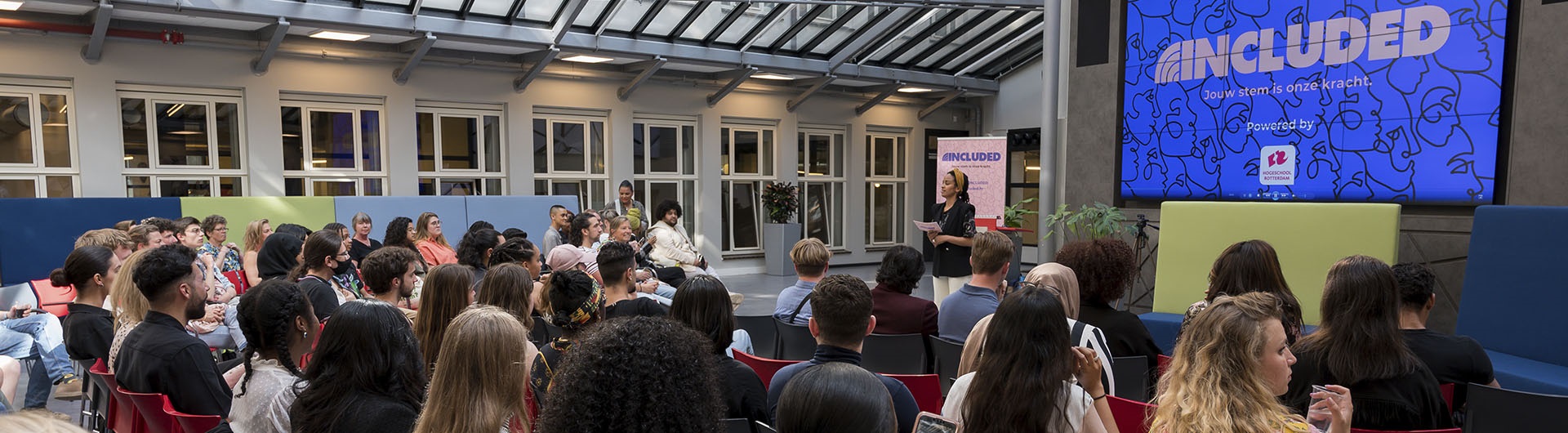De community INCLUDED streeft naar een inclusieve Hogeschool Rotterdam door ruimte te geven aan de ongehoorde verhalen van studenten om racisme, discriminatie en inclusie bespreekbaar te maken. Met het delen van kennis en ervaringen wil INCLUDED bewustzijn creëren, alle mensen met elkaar verbinden en iedereen zich thuis laten voelen op de hogeschool.