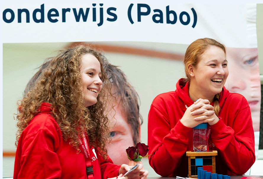 Kirsten van Driel (16), zit op het vwo. Zij loopt samen met haar ouders op de begane grond bij Museumpark rond en blijkt al precies te weten wat ze wil: een docentenopleiding. Kirsten vertelt: "Ik wil al heel lang juf worden. Ik ben me nu aan het oriënteren op de academische pabo. Vooral tijdens de voorlichting die zowel door studenten als docenten werd gegeven, heb ik veel info gekregen over wat de indeling van de studie is.’’