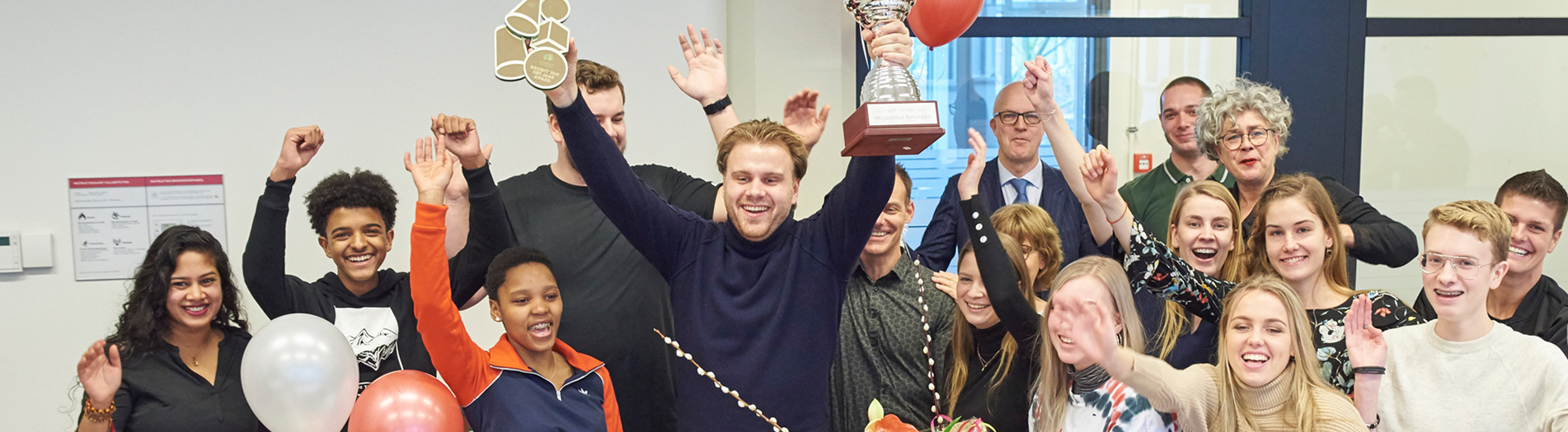 En dat is waar de verkiezing precies om draait, zegt Willemijn den Herder van de studentengeleding van de Centrale Medezeggenschapsraad (SGMR), die de jaarlijkse verkiezing organiseert. “De waardering die docenten verdienen wil nog wel eens ondersneeuwen. Door elk jaar deze wisselbeker uit te reiken willen we dat doorbreken en docenten en hun team laten weten dat hun werk heel erg wordt gewaardeerd door studenten.”