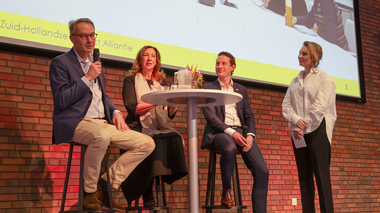 Een panelgesprek met Ferrie Förster (Economische Board Zuid-Holland), Elisabeth Minnemann (De Haagse Hogeschool) en Marius Hovius (Rabobank) bood scherpe inzichten over de noodzaak van samenwerking bij het aanpakken van deze opgaven.