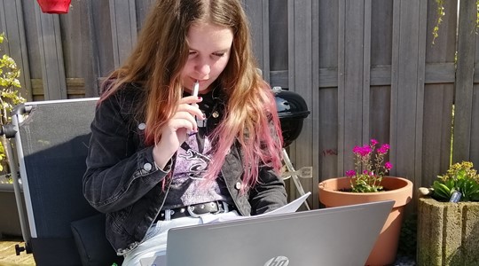 “Mijn vaste leerplek, lekker op mijn eigen instituut. Op school ben ik veel productiever. Ik mis vooral de rust. Vrij van het chaotische thuis...”